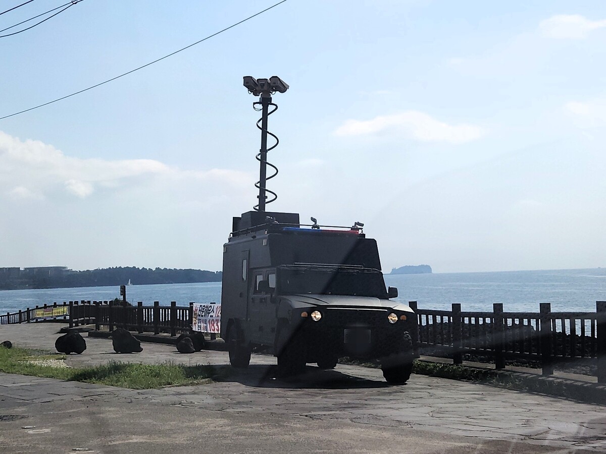 해안 감시하는 제주경찰청 해안경비단 이동식 열영상감시장비(TOD) 차량. 세계일보 자료사진 제주 해안 약 250㎞ 구간에 설치된 열영상감시장비(TOD) 40여 대가 24시간 가동 중이지만 이들의 밀입국을 감지하지 못했다. 제주항 출입 화물 차량을 검문 검색하는 엑스레이도 무사 통과했다.