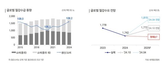 이같은 실적 악화의 원인을 한신평은 수급 불균형을 꼽았다. 정 애널리스트는 "글로벌 시장을 보면 2022년부터 중국 중심으로 세계 철강 소비가 감소하면서 수급 불균형이 심화되고 있다"며 "미국 관세가 세계 경제와 통상 환경에 예상보다 광범위하고 강한 영향을 미치고 있는 점을 고려할 때 단기적으로 철강 수요가 부진한 흐름을 이어갈 것"이라고 설명했다.