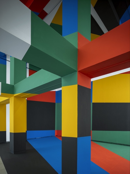 12월7일까지 열리는 서울 종로구 성곡미술관 개관 30주년 기념전 ‘미술관을 기록하다’에 전시된 조르주 루스의 ‘서울, 성곡Ⅰ’. 특정한 시점에서만 온전한 이미지가 보이는 ‘아나모르포시스’ 기법으로 그려냈다. 성곡미술관 제공 회화가 전통적으로 평면 위에서 관객의 시선을 고정시켰다면, 루스는 특정한 시점에서만 온전한 이미지가 보이는 ‘아나모르포시스’ 기법으로 3차원 공간에 가상의 2차원적 도형을 그려내며 관객의 움직임을 요구한다. 공간을 탐색하는 과정이 곧 예술 작품으로 전환되는 것이다. 관람객은 작품과의 보이지 않는 긴장 속에서 완전함과 불완전함을 오가고, ‘본다’는 행위를 사유하게 된다. 루스의 색면들은 단순한 착시가 아니라 시각과 공간, 존재와 인식이 교차하는 철학적 사건이다. ‘서울, 성곡Ⅰ’이라는 이름이 붙은 이 작품은 성곡미술관 개관 30주년이라는 맥락 속에서 더욱 의미심장하다. 이번 전시를 위해 루스는 성곡미술관을 프레임 삼아 작업을 펼쳤다. 이 작품 외에도 전시실 전체를 하나의 강렬한 회화적 구조로 전환한 ‘서울, 성곡Ⅱ’까지 장소의 시공간적 흔적을 품은 채 관객의 발걸음 위에서 탄생했다. 미술관에 축적된 시간과 기억에 대한 예술적 오마주이자, 이 장소에서만 구현될 수 있는 시각적 사건을 창조한 작품이다.