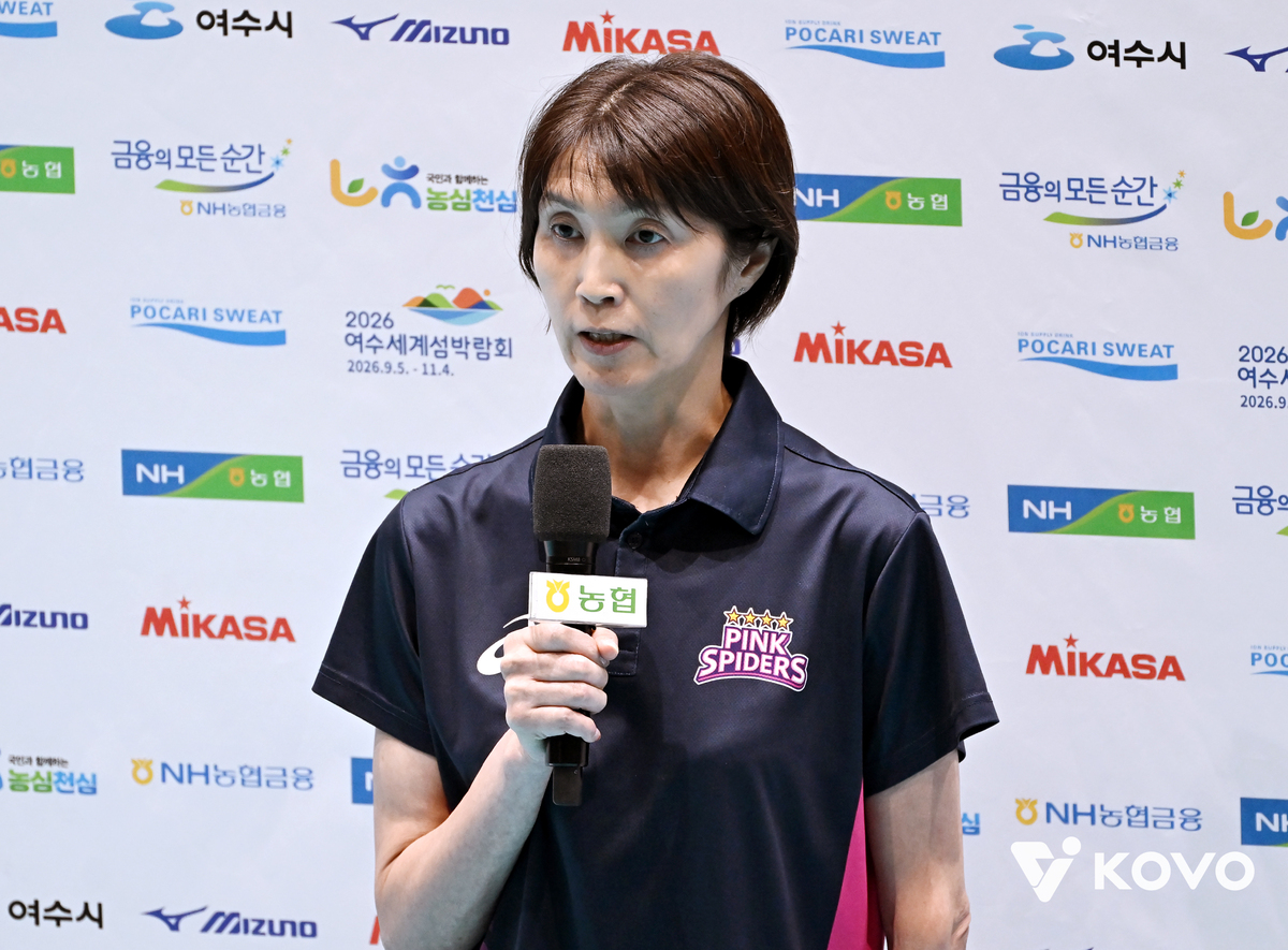페퍼저축은행과 흥국생명의 2025 여수·NH농협컵 프로배구대회(이하 KOVO컵) 조별예선 A조 맞대결이 펼쳐진 23일 여수 진남체육관. 경기 전 지난 21일 현대건설과의 경기를 통해 흥국생명 사령탑으로 공식전 첫 경기를 치른 요시하라 토모코 신임 감독을 만나 소감을 물었다. 그는 “경기 내용적으로 보면 서브가 제 기능을 하지 못했다. 경기력도 좋을 때도 있었지만, 좋지 않을 때 너무 흔들렸다. 선수들에게 어떻게 자신감을 불어넣을지 고민하고 있다”고 답했다.