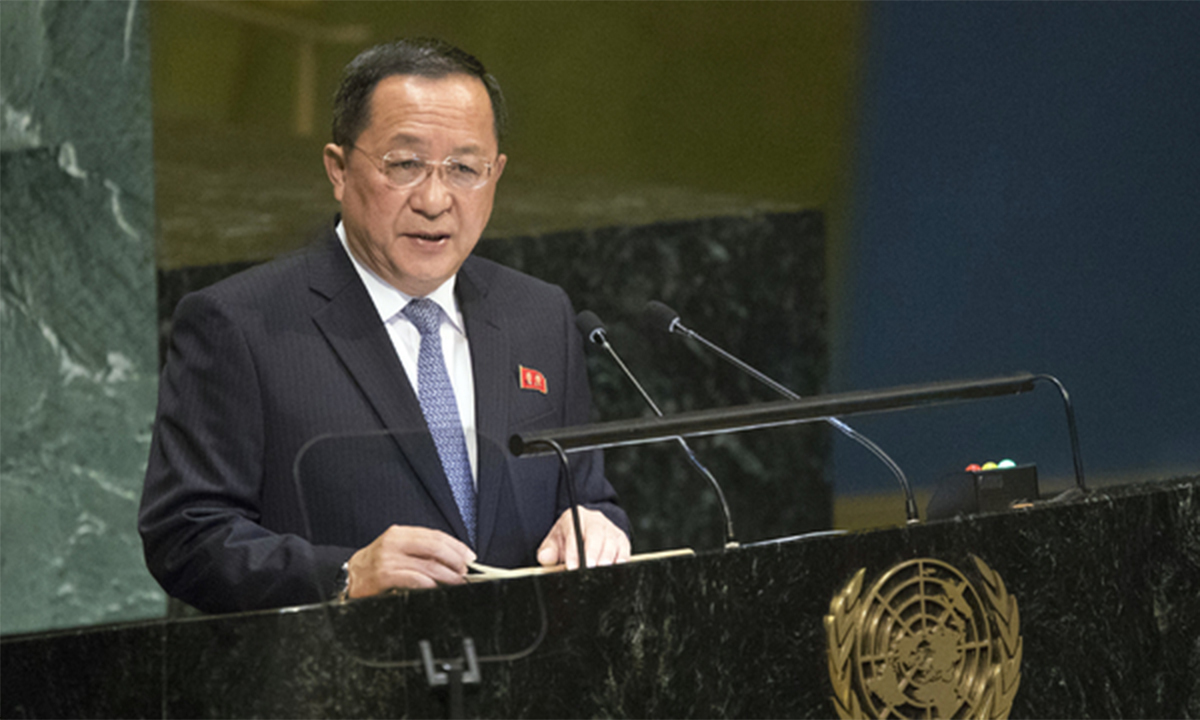 지난 2018년 9월29일(현지시각) 리용호 북한 외무상이 유엔 총회에서 연설하고 있다. AP뉴시스 미 정부가 주유엔 북한대표부를 통해 여러 차례 트럼프 대통령의 친서를 전달하려 했고, 북한 외교관들이 수령을 거부했다고 보도된 바 있다. 이에 대해 백악관은 “트럼프는 김정은과의 서신 교환에 열려 있으며 2018년 싱가포르 회담 때와 같은 진전을 원한다”고 밝혔다. 조한범 통일연구원 석좌연구위원은 “북한 고위급이 (유엔총회에) 참석하는 만큼 물밑에서 실무접촉을 할 가능성을 배제할 수 없다”며 “트럼프 대통령 입장에서는 미국 본토를 타격하지 않도록 북핵을 동결하는 것도 비핵화 효과를 갖고, 한국도 여기에 동의한다고 했으니 합의의 콤비네이션이 점점 만들어지고 있는 상황”이라고 했다. 무르익는 북·미 대화 분위기가 한국 입장에선 북핵 문제 진전의 기회로 작용하지만, ‘한국 패싱’을 걱정해야 한다는 점은 극복해야 할 과제다.
