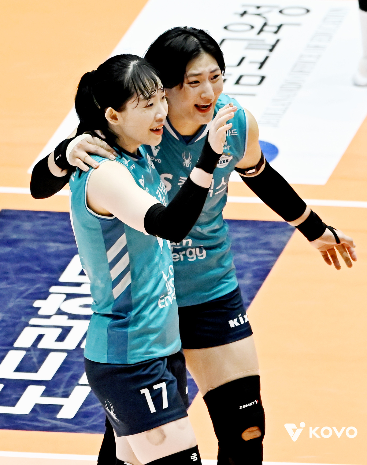 경기 뒤 수훈선수로 인터뷰실에 들어선 김미연은 “수훈선수 인터뷰가 얼마만인지 기억도 가물가물할 정도”라며 웃었다. 팀 내 선수들이 대부분 1990년대 후반생, 2000년대생인 상황. 어린 후배들과 함께 하는 게 어떠냐고 묻자 김미연은 “애들이 항상 밝다. 제가 힘들어서 좀 가라앉을 때도 후배들이 항상 밝으니 따라 밝아지는 것 같아 기분 좋다”라고 답했다.
