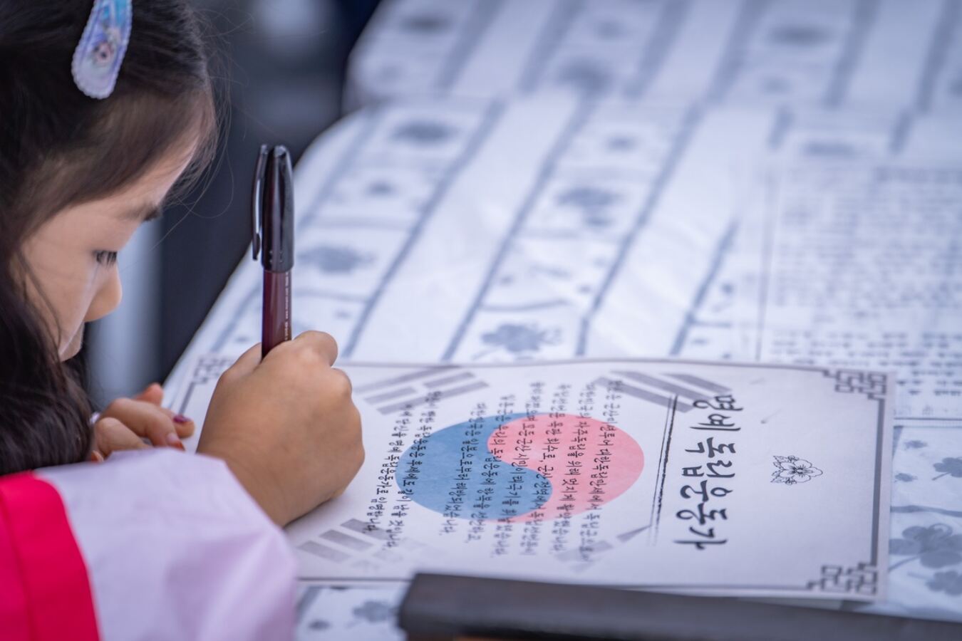군산시간여행 축제에서 한 어린이 방문객이 명예독립운동가 임명장에 자기 이름을 적고 있다. 군산시 제공 축제장에는 치즈 요리와 우유 블록 만들기를 체험할 수 있는 ‘도심속 목장 나들이’, 임무 게임 ‘독립자금을 찾아라’ 등 협찬 프로그램도 마련됐다. 박물관 인근 골목의 프리마켓, 구영6길 상인회의 먹거리 장터, ‘2025 짬뽕 페스티벌’이 함께 열려 군산만의 맛을 더한다. 군산시 관계자는 “시간과 공간을 넘나드는 생생한 축제를 통해 군산의 역사적 가치와 미래 비전을 널리 알릴 것”이라고 말했다.