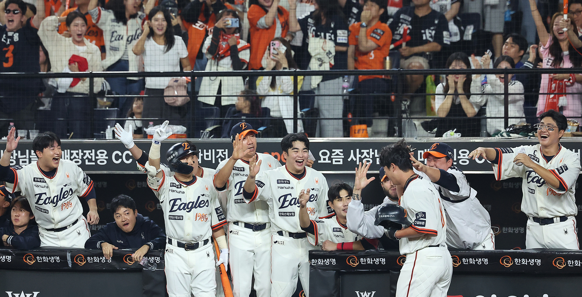 26일 대전 한화생명 볼파크에서 열린 프로야구 '2025 신한 SOL뱅크 KBO 리그' LG 트윈스와 한화 이글스의 경기, 노시환이 득점에 성공하고 있다. 뉴스1 한화는 26일 대전 한화생명볼파크에서 열린 2025 KBO리그 LG와의 홈 경기에서 4-1 역전승을 거뒀다. 시즌 성적 81승3무55패가 된 2위 한화는 선두 LG(84승3무53패)와의 승차를 2.5경기 차로 줄였다. LG는 올해 한화와 정규시즌 상대 전적에서 우위(7승 6패 1무)를 유지하긴 했지만, 대전 원정에서는 1무4패로 절대 열세다. 만약 한화와 한국시리즈를 치르게 되면 대전에서 치를 원정에서 심적 부담감이 더 커질 요소다. 전날 LG가 롯데를 11-1로 대파하고, 한화가 두산에 0-7로 패하면서 LG의 정규리그 우승을 위한 매직넘버는 5에서 3으로 한꺼번에 2가 줄었다. 이는 곧 한화가 한국시리즈 직행 티켓을 쥐기 위해선 3연전을 스윕해야만 사실상 가능하다는 얘기다. 2승1패만 해도 LG의 매직넘버는 1로 줄어들기 때문이다.