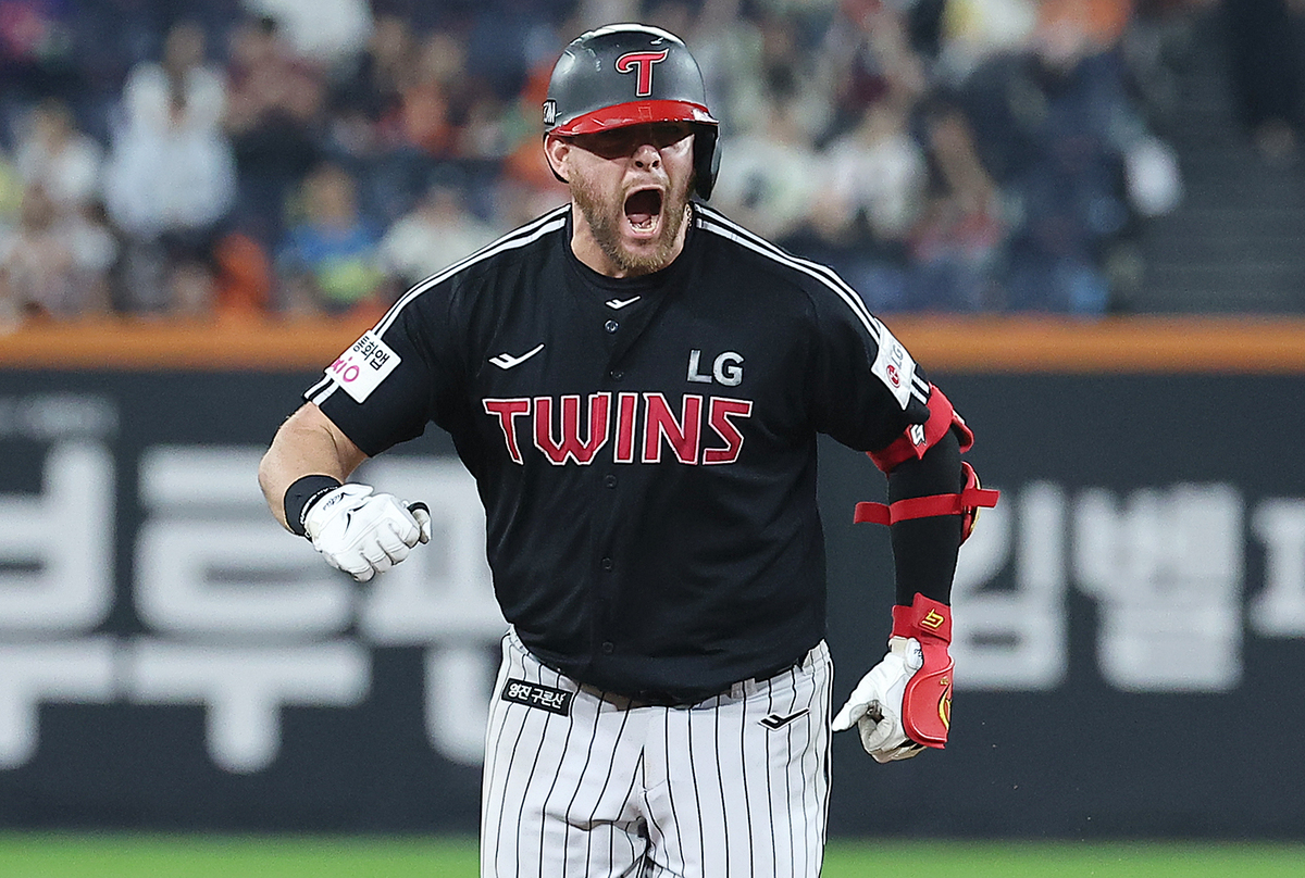 LG 오스틴. 뉴스1 균형을 먼저 깨뜨린 건 LG였다. LG 역사상 최고 외인 타자라고 해도 과언이 아닌 오스틴 딘이 잘 던지던 류현진에게 일격을 가했다. 6회 1사 주자 없는 상황에 타석에 들어선 오스틴은 류현진의 시속 129㎞짜리 낮게 떨어진 체인지업을 걷어올렸고, 이 타구는 왼쪽 담장을 넘겼다. LG 1-0 리드. LG의 살얼음 같은 리드로 진행되던 경기는 7회말 요동치기 시작했다. 7회 1사 후 한화는 노시환의 좌전 안타에 이어 채은성의 좌중간 안타 때 좌익수 김현수의 송구가 2,3루 사이에 어정쩡하게 흘렀고, 채은성은 이를 틈타 2루까지 내달려 2,3루 기회를 만들어냈다. 잘 던지던 치리노스가 마운드를 내려갔다.