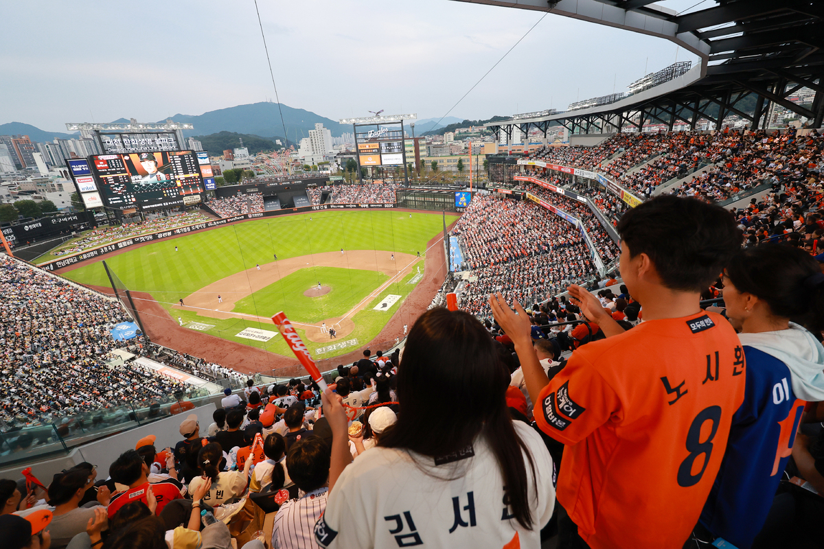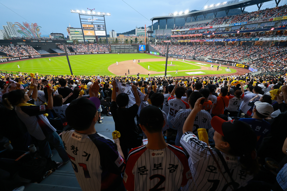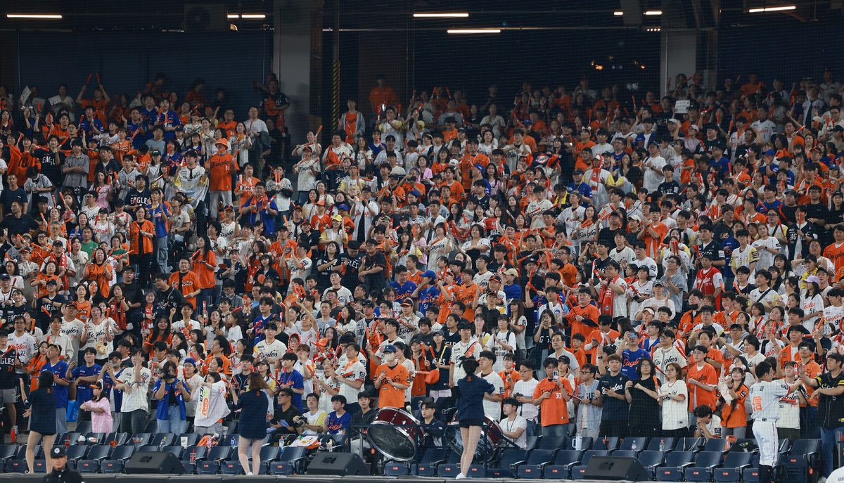 27일 오후 대전 한화생명 볼파크에서 열린 프로야구 '2025 신한 SOL뱅크 KBO 리그' LG 트윈스와 한화 이글스의 경기를 찾은 수많은 야구팬들이 응원을 펼치고 있다. 뉴스1 한국야구위원회(KBO)는 2025 KBO리그가 1200만 관중을 달성했다고 27일 밝혔다. 26일까지 1196만3572명이 입장했던 KBO리그는 27일 대전(LG-한화), 광주(NC-KIA), 잠실(SSG-두산)에서 총 5만5695명이 입장했다. 잠실(2만3750명)과 대전(1만7000명)은 매진됐고, 광주는 1만4945명의 관중이 야구장을 찾았다. 이로써 2025 KBO리그는 총 703경기에서 누적 관중 1201만 9267명이 입장했다. 평균 관중은 1만7097명으로 지난해 동일 경기 수 대비 약 15% 증가했다. KBO 리그 전체 좌석 점유율은 82.9%를 기록 중이다. 올 시즌 KBO 리그는 100만명 단위 관중 달성을 모두 역대 최소 경기로 달성한 바 있다. 지난 8월23일 지난 시즌 역대 최초에 이어 두 시즌 연속 1000만 관중을 달성했고, 지난 5일에는 지난 시즌 기록을 넘어 역대 한 시즌 최다 관중 신기록 달성했다. 지난 9일엔 역대 최초로 1100만 관중을 달성했고, 27일에 1200만 관중을 달성하며 신기원을 열었다.