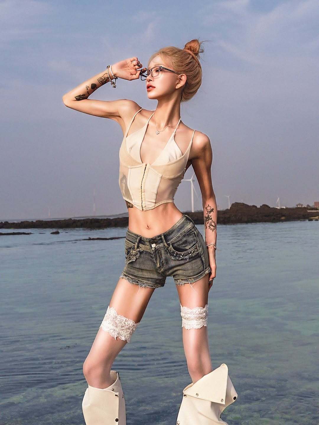 최준희는 다이어트 후 ‘뼈말라 몸매’로 걱정을 산 바 있다. 최준희 SNS 캡처 한편, 최준희는 과거 루푸스 투병으로 체중이 96kg까지 증가했으나 치료와 식단, 꾸준한 운동을 통해 41kg까지 감량한 사실을 밝혀 큰 화제를 모았다. 다만 갈비뼈가 보일 정도로 마른 몸매에 네티즌들의 많은 걱정을 사기도 했다.