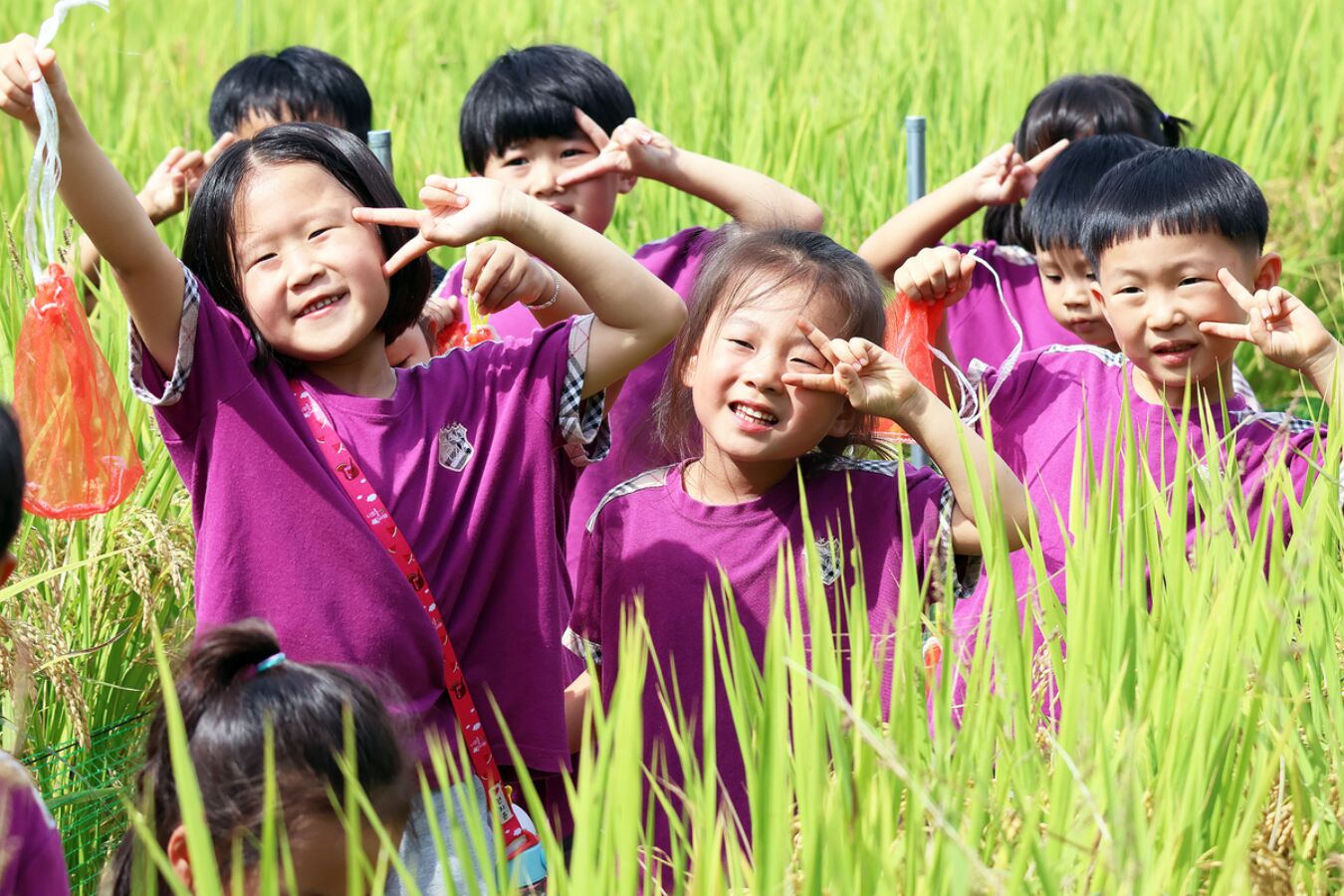 제13회 완주 와일드&로컬푸드축제를 찾은 어린이 방문객들이 메뚜기를 잡으며 즐거운 한 때를 보내고 있다. 완주군 제공