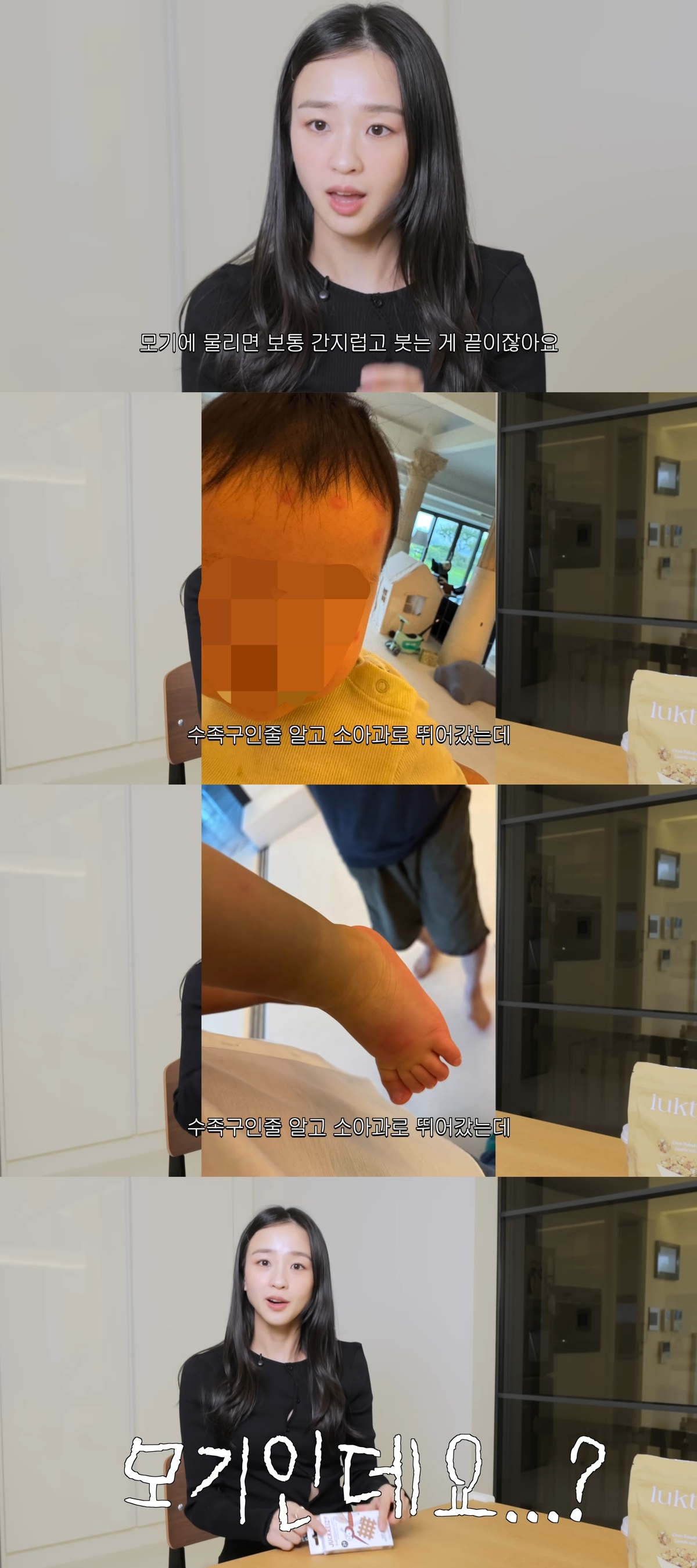 이어 그는 “보통 모기에 물리면 간지럽고 붓는 게 전부이지 않냐. 그런데 아들은 심하게 부어서 염증이 나고 고름이 생기더라”며 심각한 상태였음을 밝혔다.
