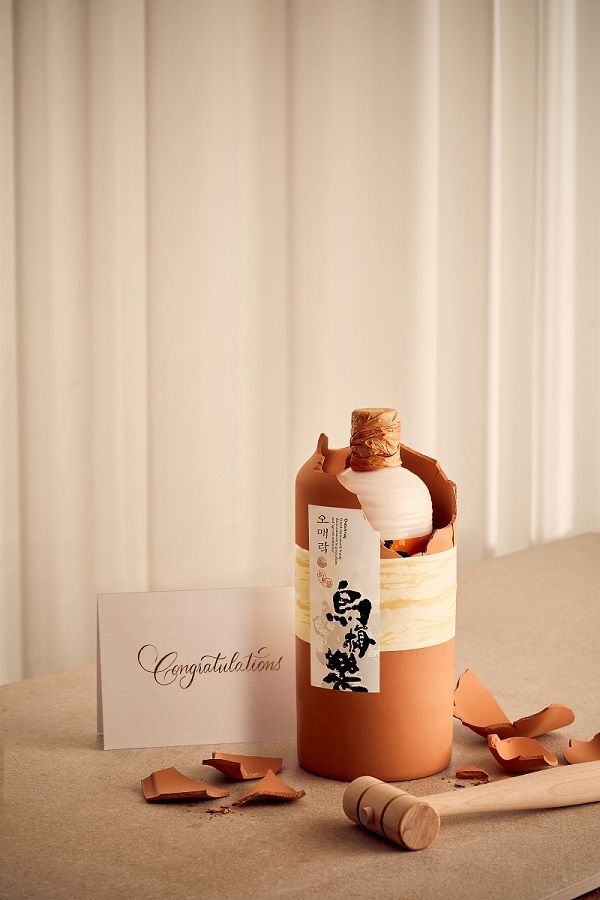 패키지를 여는 방식이 독특한데 황토로 구운 토기를 동봉된 나무망치로 깬 후 그 안의 병을 꺼내야 한다. 병을 감싼 토기는 자연 숙성을 도와주는 특별한 저장고 역할을 하며, 토기를 깨는 행위에는 액운을 쫓는다는 의미가 있어 명절과 같은 특별한 날의 ‘세리머니 주’로 활용하기 좋다.