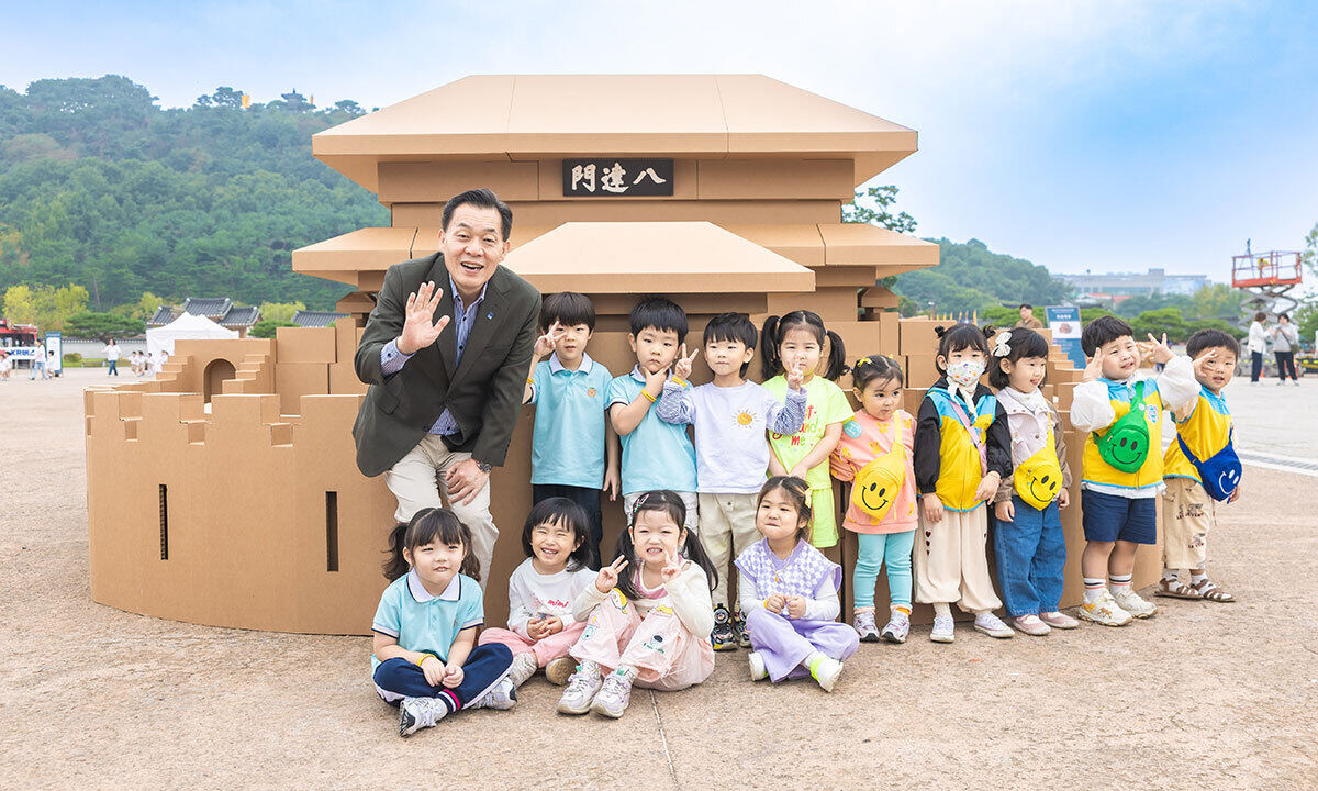 이재준 수원시장이 화성행궁에서 아이들과 기념촬영을 하고 있다. 수원시 제공 경기 수원·화성·안양시와 서울 종로·용산구 등은 정조대왕의 능행차를 기념해 매년 10월 이를 재현하고 있다. 정조대왕은 1789년 지금의 경기 양주시 배봉산에 있던 아버지 사도세자의 묘를 화성시 융릉으로 옮긴 뒤 1800년 붕어(崩御)할 때까지 매년 능행을 이어갔다.
