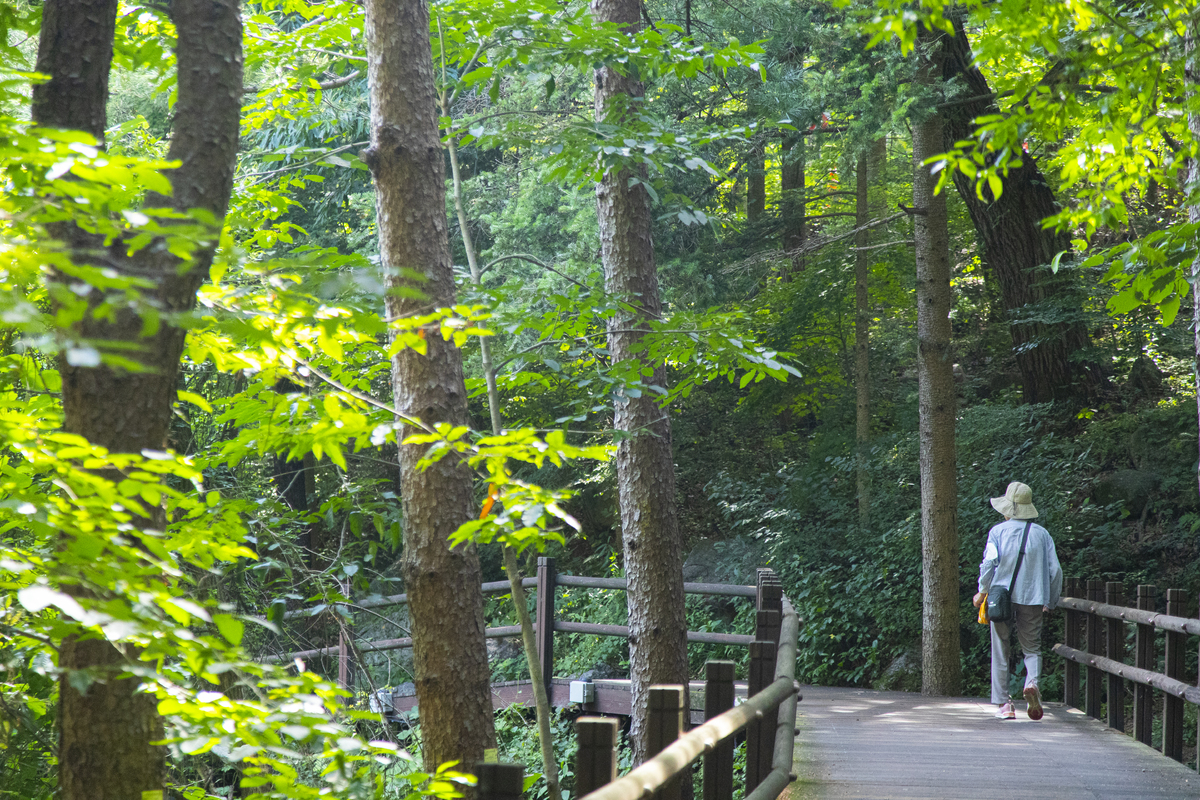 의왕 청계산맑은숲공원. 경기관광공사 제공 ◆ 의왕 청계산맑은숲공원 청계산 남쪽 자락의 청계산맑은숲공원은 숲과 계곡이 어우러진 곳이다. 나무 향과 흙 내음이 은은하게 퍼지는 공원 입구가 방문객을 반긴다. 하늘을 찌를 듯 솟은 나무 사이로 데크가 이어지고 그 옆으로 깨끗한 계곡물이 흐른다.