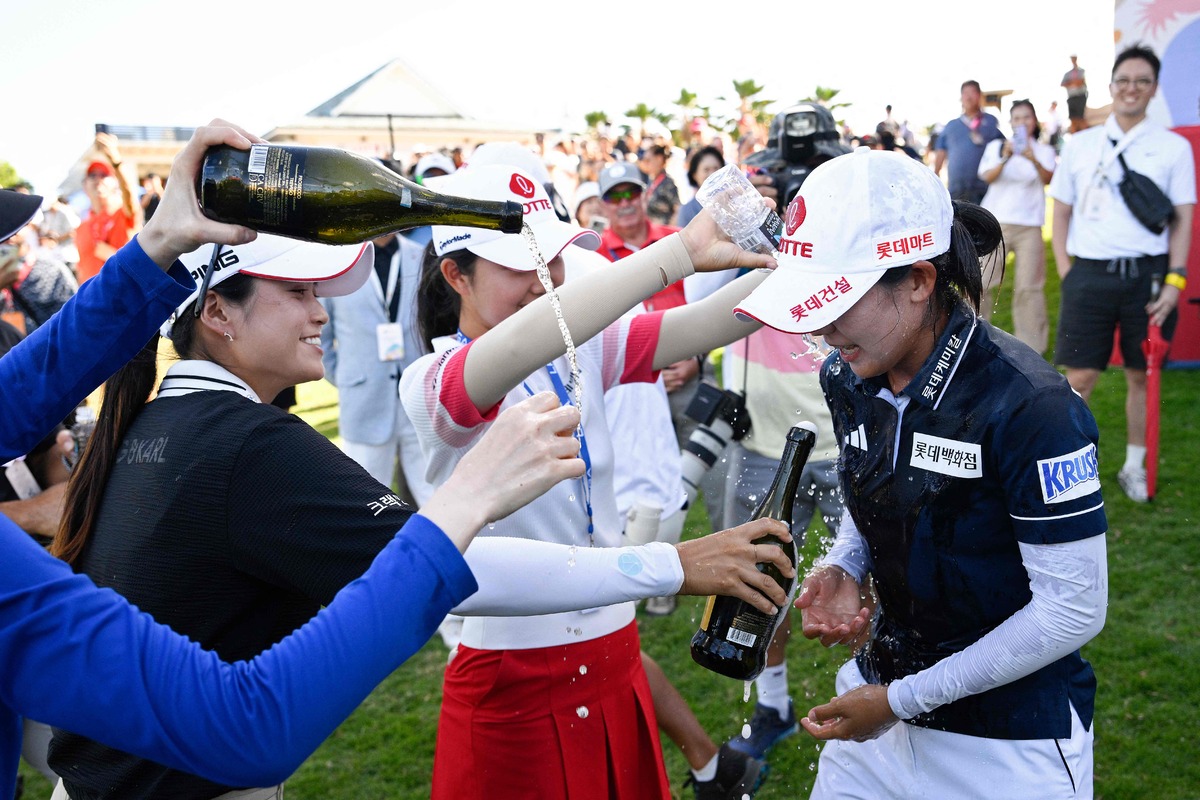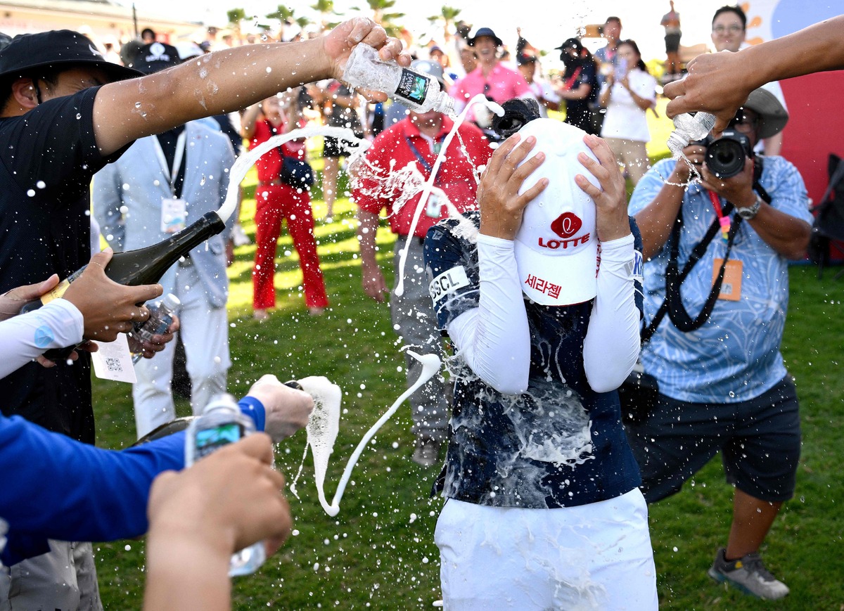 우승 뒤 이탈리아 스파클링 와인 프로세코 빌라 산디를 마시는 황유민. AFP연합뉴스 추석 전날이던 5일 미국 하와이주 오아후섬 에바비치의 호아칼레이 컨트리클럽에서 열린 미국여자프로골프(LPGA) 투어 롯데 챔피언십 최종라운드. 후원사 초청 선수로 출전한 ‘돌격 대장’ 황유민(22·롯데)은 ‘대형사고’를 치고 말았습니다. 1타차 공동 2위로 최종라운드를 시작했지만 4번 홀(파3) 버디를 5번 홀(파5) 보기로 맞바꾸며 좀처럼 앞으로 치고 나가지 못해 우승과 거리가 멀어 지는 듯했습니다. 하지만 13번 홀(파4) 버디를 잡은 뒤 놀라운 ‘마법’이 펼쳐졌습니다. 황유민은 15~18번 홀 막판 4개 홀에서 연속으로 신들린 버디쇼를 펼쳤고 결국 대선배인 세계랭킹 9위 김효주(29·롯데)를 한타 차로 따돌리고 우승 트로피를 들어 올립니다. 그는 키 163cm의 여리여리한 체격과 앳된 외모와 달리, 폭발적인 장타를 앞세운 공격적인 플레이로 ‘돌격 대장’이란 별명을 얻었는데 이를 입증한 순간입니다.