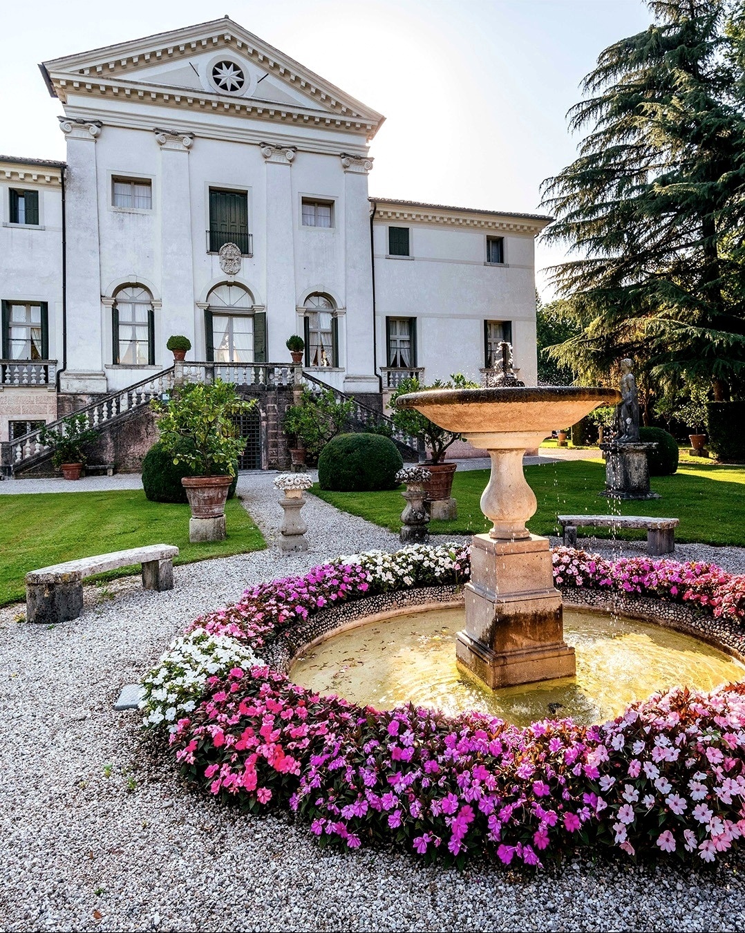 빌라 산디 전경. 인스타램 ◆팔라디오 양식 걸작 빌라 산디 빌라 산디 건물은 과거 트레비소와 베네치아 경계 지역에 있어 ‘트레비소(Treviso)의 변방’이란 뜻으로 불리던 마르카 트레비지아나(Marca Trevigiana) 언덕 중심에 놓여 있습니다. 팔라디오 양식의 걸작으로 꼽히며 완벽한 대칭을 지닌 빼어난 건축미를 자랑합니다. 이는 16세기 건축가 안드레아 팔라디오(Andrea Palladio, 1508-1580)가 베네토 지방에 유행시켰던 건축 스타일입니다. 지하에서 제 1차 세계대전 당시 이탈리아군의 전투 사령부로 사용됐던 터널들이 발견됐으며 현재 와이너리 셀러로 사용됩니다. 빌라 산디 입구에는 베네치아의 유명 조각가 오라치오 마리날리(Orazio Marinali)의 섬세한 조각상들이 늘어서 있고 그의 작품은 지붕 박공(gable)과 뒤뜰에도 장식돼 있습니다. 건물의 중앙부는 4개의 이오니아식 기둥(Ionian columns)이 받치고 있는 웅장한 프로나오스(pronaos·현관 전면 주랑)가 자리하고 있고 양쪽으로는 우아한 바르케세(Barchesse·날개 건물)와 작은 예배당이 세워져 있습니다.