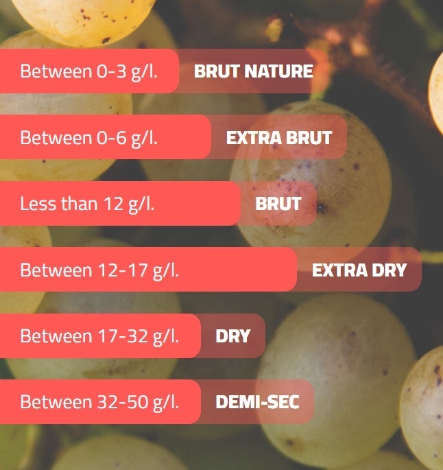 프로세코의 당도는 샴페인과 비슷합니다. 제로에서 스위트까지 다양합니다. 브뤼 나뚜르(Brut Nature) 0~3g, 엑스트라 브뤼(Extra Brut) 3~6g, 브뤼(Brut) 6~12g, 엑스트라 드라이(Extra Dry) 12~17g, 드라이(Dry) 17∼32, 드미섹(Demi Sec) 32∼50g입니다. 보통 브뤼나, 엑스트라 드라이가 가장 인기가 높습니다.