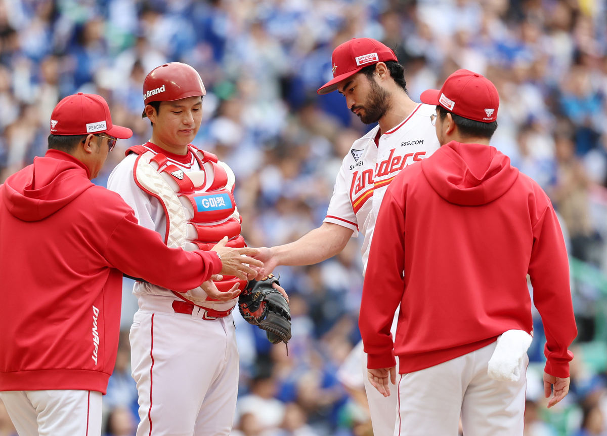 9일 인천 미추홀구 SSG랜더스필드에서 열린 2025 KBO 포스트시즌 준플레이오프 1차전 삼성 라이온즈와 SSG 랜더스의 경기, SSG 선발투수 미치 화이트가 삼성 3회초 공격 무사 주자 1루서 김영웅에게 투런 홈런을 허용한 데 이어 김태훈에게 안타를 허용한 뒤 마운드를 내려가고 있다. 뉴시스 정규시즌을 3위로 마쳐 일찌감치 준PO에 직행한 SSG. 1차전 선발로는 누가 봐도 앤더슨이었다. KBO리그 2년차를 맞이한 올 시즌, 앤더슨은 30경기에 등판해 12승7패로 승운은 그다지 따르지 않았지만, 평균자책점 2.25로 3위, 탈삼진은 245개로 2위에 올랐다. 특히 탈삼진은 코디 폰세(한화, 252개)의 신기록에 가려서 그렇지 앤더슨의 245개도 종전 기록인 2021년 아리엘 미란다(당시 두산, 225개)를 뛰어넘는 기록이었다. 그러나 앤더슨이 최근 장염으로 인해 운동은 고사하고 제대로 식사도 하지 못할 정도로 컨디션이 엉망인 상황. 제대로 된 식사를 8일에야 시작했을 정도다. 결국 SSG 벤치는 1차전 선발을 앤더슨이 아닌 화이트에게 맡겨야 했다.