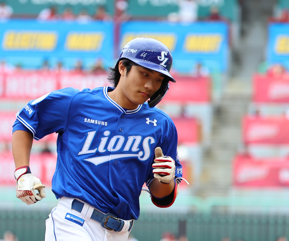 3회초 무사 1루 삼성 김영웅이 우월 투런 홈런을 치고 그라운드를 돌고 있다. 연합뉴스