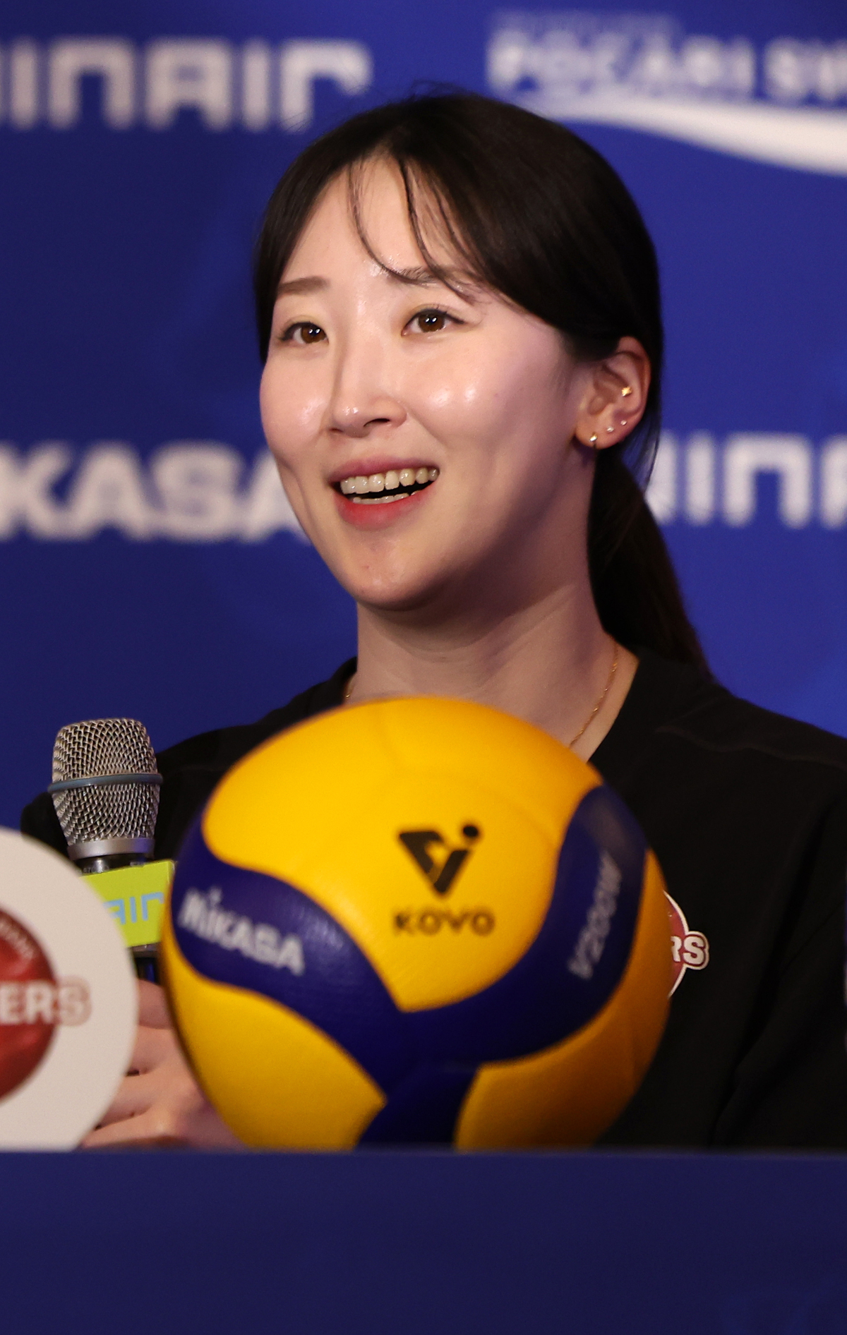 [청담동=남정훈 기자] 여자 프로배구 페퍼저축은행의 아웃사이드 히터 고예림은 지난 봄, 새로운 도전을 택했다. 세 번째 FA 자격을 얻은 그는 2019~2020시즌부터 6시즌 간 뛰었던 현대건설을 떠나 페퍼저축은행으로의 이적을 선택했다. 창단 후 네 시즌 동안 탈꼴찌에 실패한 페퍼저축은행은 준수한 공격력과 안정된 수비력을 보유한 고예림에게 연봉 3억원, 옵션 7000만원까지 얹어 총액 3억7000만원의 조건을 내밀어 영입에 성공했다. 이적했지만, 아직은 오랜 기간 뛰어온 팀이 익숙해서일까. 지난달 여수에서 열린 KOVO컵에서 웃음 나는 에피소드가 하나 생겼다. 고예림은 16일 서울 강남구 호텔 리베라에서 열린 2025~2026 V리그 여자부 미디어데이에 앞서 가진 사전 인터뷰에서 그 에피소드를 들려줬다.