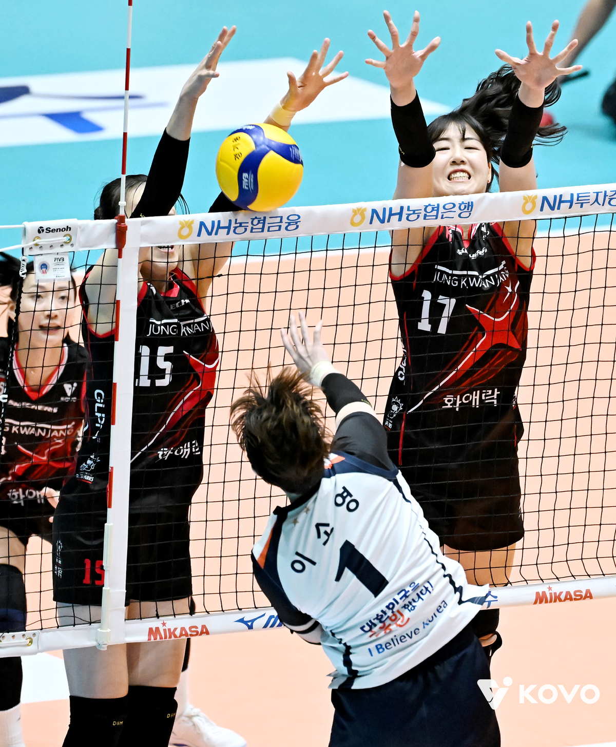 [청담동=남정훈 기자] 여자 프로배구 정관장의 미들 블로커 정호영에게 2025~2026시즌은 ‘특별히’ 더 중요하다. 2019~2020 신인 드래프트 전체 1순위로 프로에 데뷔한 정호영은 2024~2025시즌으로 6년차 시즌을 마쳤다. 드래프트 동기인 다른 2001년생 선수들, 이다현(흥국생명)이나 육서영(IBK기업은행)은 자유계약선수(FA)가 됐지만, 정호영은 1년이 더 늦다. 2년차 시즌이었던 2020~2021시즌에 시즌 첫 경기에서 무릎이 뒤틀리는 부상을 당했고, 진단결과는 전방십자인대 파열로 시즌아웃이었다. 이 때문에 FA 자격 행사가 1년이 더 늦어지게 됐다. 2021~2022시즌에 건강하게 다시 돌아온 정호영은 무럭무럭 성장했고, 어느새 리그를 대표하는 미들 블로커 중 하나로 자리매김했다. 1m90의 큰 신장에 파워넘치는 공격과 블로킹까지 2025~2026시즌을 건강하게 보낸다면 시즌을 마친 뒤에는 무난하게 FA 최대어가 될 가능성이 높다.