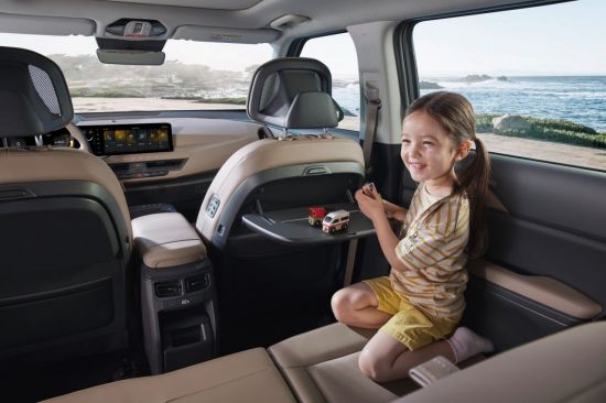 패밀리카답게 EV5 내부에서는 가족에 특화한 사양이 눈에 띄었다. 2열에는 비행기 테이블과 비슷한 접이식 책상이 도입됐다. 간단한 식사나 간식을 먹을 때 쓸 수 있도록 실용성을 높였다. 또한 2열은 풀플랫(완전 평탄화) 기능이 적용돼 차박(차+숙박)이나 장거리 여행 시 편안한 휴식공간으로 활용할 수 있다. 디즈니 캐릭터가 차량 내 화면에 등장하는 디스플레이 테마가 있고, 운전자가 잠시 자리를 비울 때 반려동물을 위해 차량 온도를 자동 조정하는 '펫모드'도 이용 가능하다.
