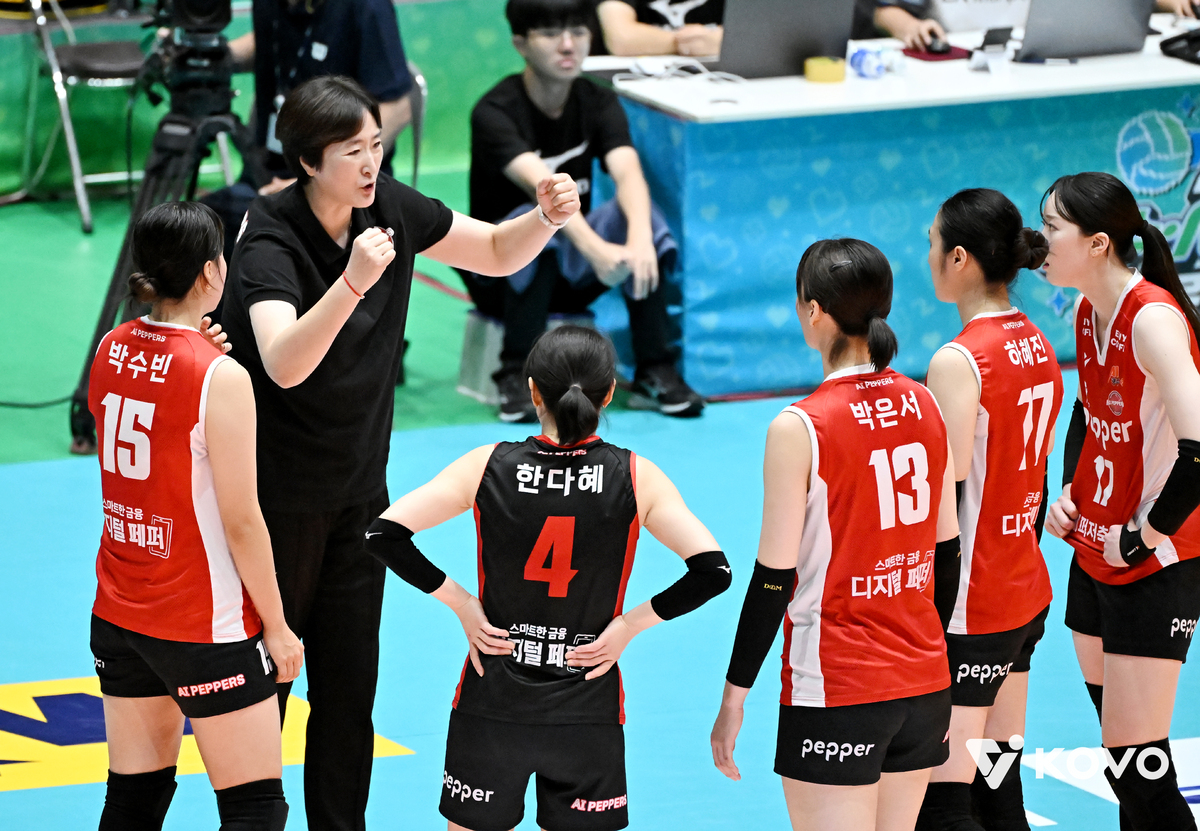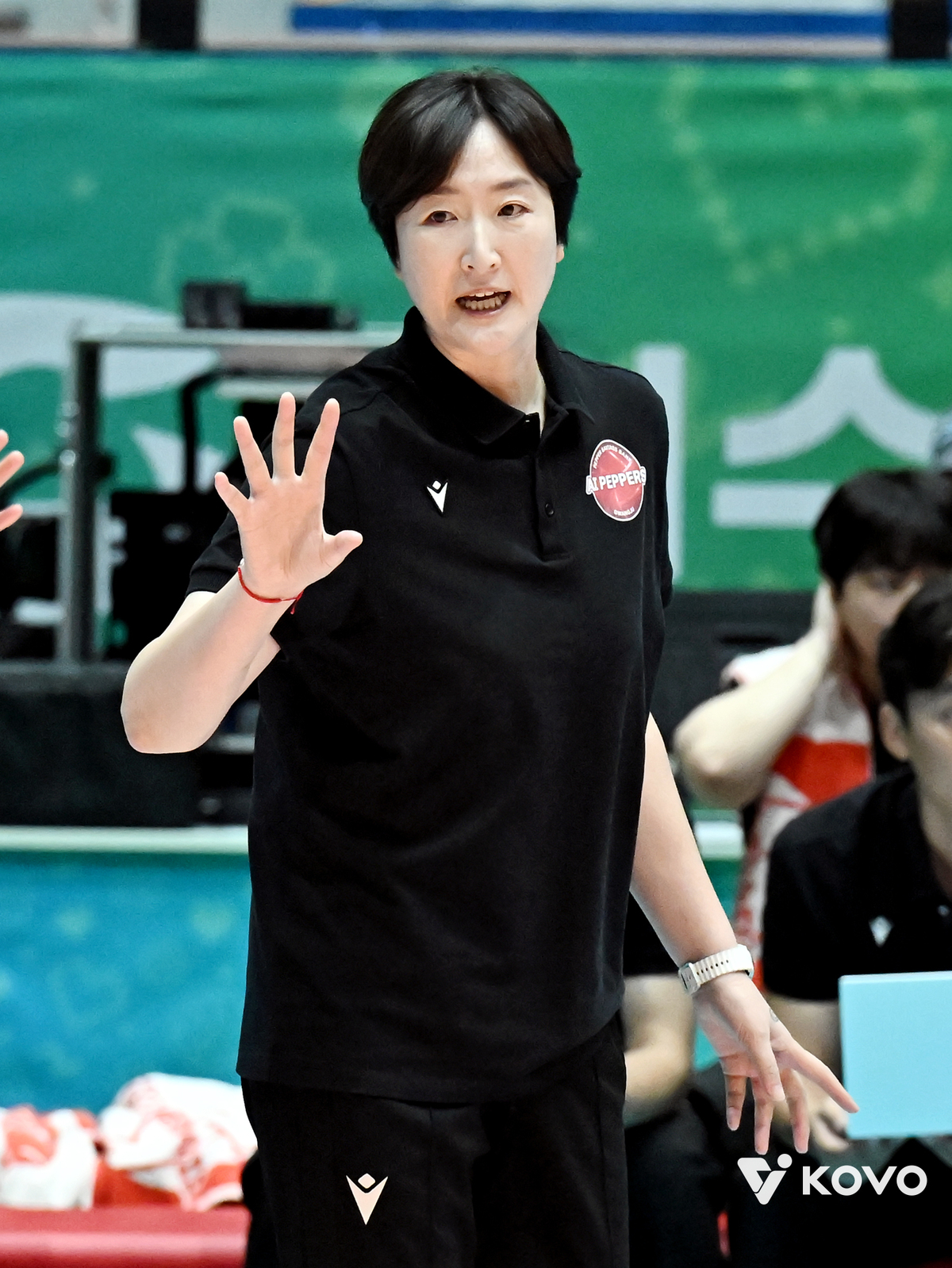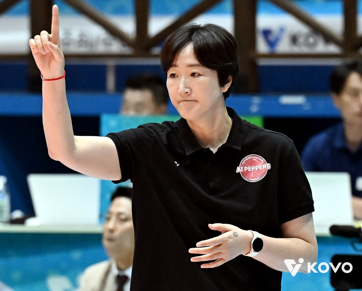 [청담동=남정훈 기자] 여자 프로배구 ‘제7구단’ 페퍼저축은행은 창단 후 네 번째 시즌이었던 2024~2025시즌에도 시즌 막판 뒷심이 달리며 GS칼텍스에게 역전을 허용해 최하위를 벗어나지 못했다. 창단 후 네 시즌 연속 꼴찌. 다만 의미가 아예 없던 시즌은 아니었다. 11승25패를 거두며 창단 후 처음으로 두 자릿수 승수를 거뒀다. 이제는 승수의 앞자리를 바꿔보고자 한다. 페퍼저축은행 2년차 사령탑 장소연 감독의 당찬 포부다. 지난 16일 서울 강남구 호텔 리베라에서 열린 2025~2026 V리그 여자부 미디어데이. 정식 행사에 앞서 감독, 국내 선수, 외국인 선수에게 20분씩 사전 인터뷰 시간이 할당됐다. 기자들의 선택의 시간. 7개 구단 중 어떤 감독, 어떤 토종 선수, 어떤 외인과 인터뷰를 할지 골라야 한다.