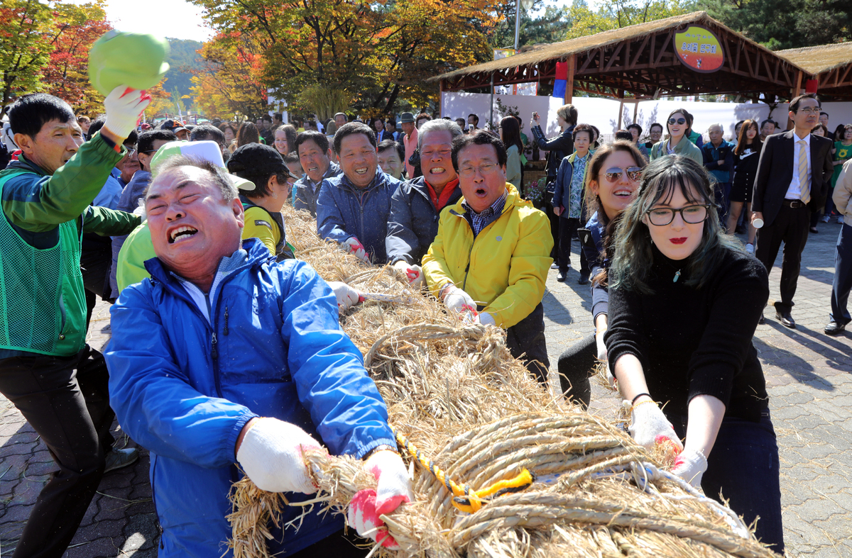 용줄다리기. 이천시 제공 이천쌀문화축제는 1999년 ‘이천농업인축제’로 출범했습니다. 2001년 ‘이천햅쌀축제’를 거쳐 2004년부터 명칭이 고정돼 국내 문화관광 최우수 축제로 자리매김했습니다. 경기 동남부에 자리한 이천은 역사와 문화의 고장입니다. 동서 27㎞, 남북 36㎞의 표주박형으로 곳곳의 구릉 사이로 복하천과 송곡천, 청미천이 흘러 논농사에 적합합니다.