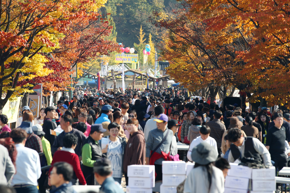 가을의 풍요로움이 절정에 이른 행사장에는 전통과 현대가 어우러진 다양한 프로그램이 마련됐습니다. 단돈 2000원에 비빔밥을 맛볼 수 있는 ‘2000명 가마솥밥’이 대표적이죠. 초대형 가마솥에서 장작불로 지은 쌀밥을 매일 관람객에게 제공합니다.