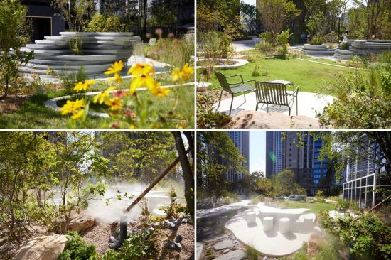 롯데건설은 지난 7월 '천안 롯데캐슬 더 청당'에 '그린바이그루브' 정원을 처음 적용했다. '순수한 자연과 조우(Communication in Fine Nature)'라는 주제로, 계곡 숲 풍경과 햇빛이 쏟아지는 뜰 이미지를 정원 안에 재현했다. 중앙 수경시설은 빛·물·바위 자연 요소를 곡선미와 입체적인 디자인으로 표현해 정원 깊이감을 더했다.
