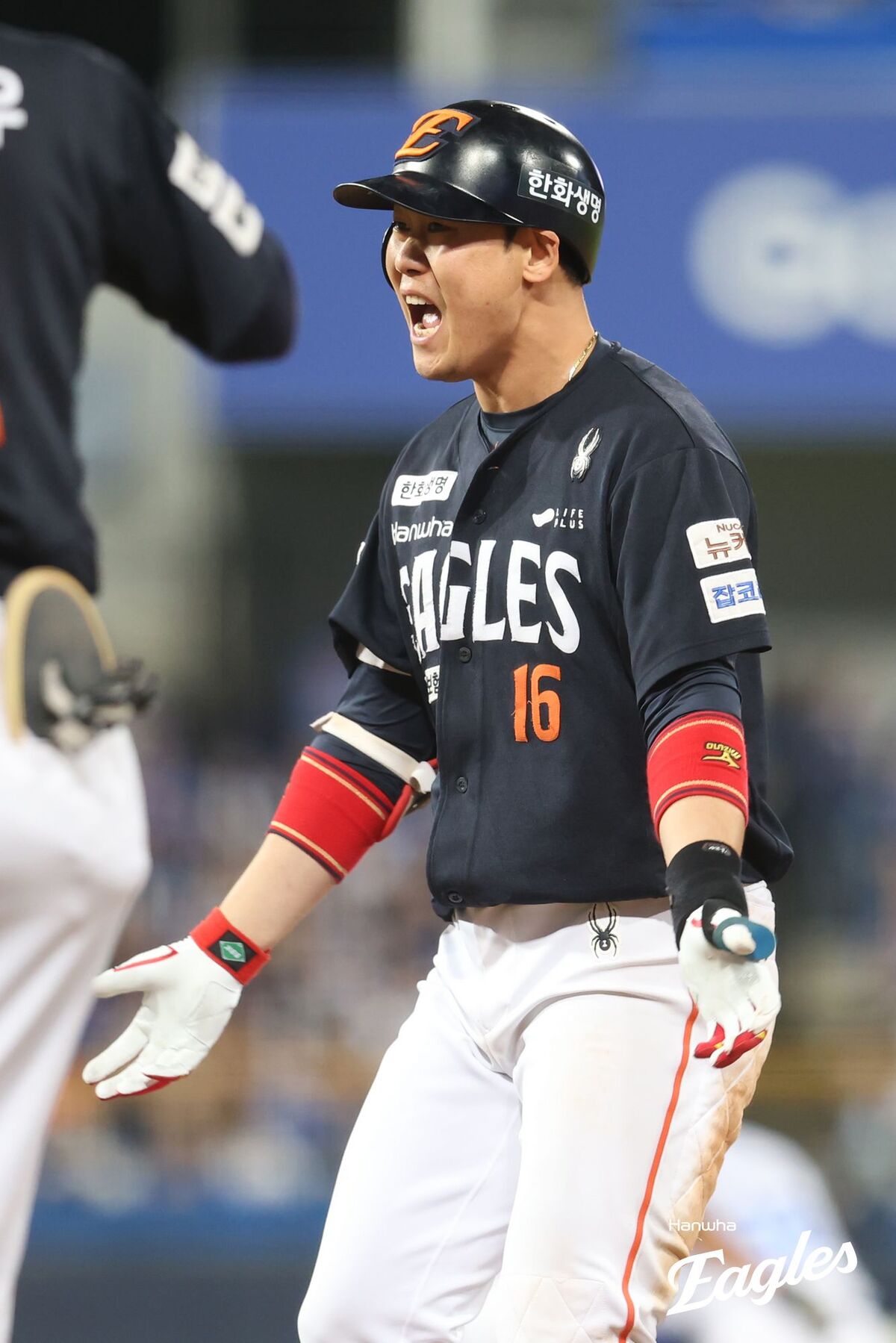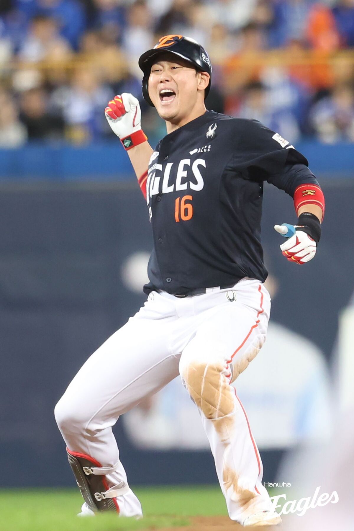 그때만 해도 그 누구도 몰랐을 것이다. 하주석이 이렇게나 한화에게 필요한 존재였을 줄. 정규시즌 개막 땐 1군 엔트리에 포함되지 못했지만, 선수층이 두텁지 않은 한화에서 하주석은 꼭 필요한 존재였다. 4월10일에 처음 1군 엔트리에 포함된 하주석은 이후 1군을 지켰다. 주전 유격수 심우준이 부상당했을 땐 유격수로, 주 포지션은 2루수로, 센터라인을 열심히 지켰다. 정규시즌 성적표는 95경기 출전 타율 0.297(276타수 82안타) 4홈런 28타점. 이미 연봉값은 너끈히 해낸 하주석이다. 하주석의 알토란 같은 존재감이 없었다면 한화의 정규리그 2위는 어려웠을지도 모른다. 2018년 이후 7년 만에 가을야구를 경험하고 있는 한화. 플레이오프 3차전까지 2승1패로 앞설 수 있었던 건 ‘대전 왕자’ 문동주의 역투가 결정적이지만, 숨은 일등공신은 누가 뭐래도 하주석이다.