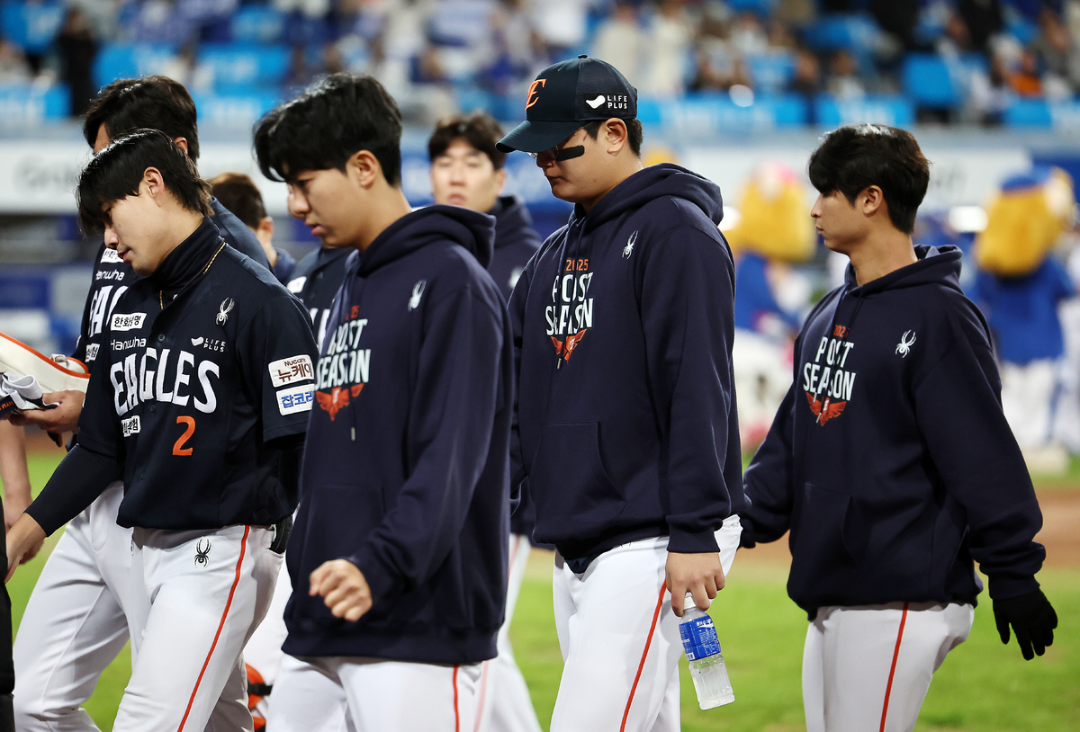 22일 대구삼성라이온즈파크에서 열린 2025 KBO 포스트시즌 플레이오프 한화 이글스 대 삼성 라이온즈 4차전. 7 대 4 삼성의 승리로 경기가 끝난 후 한화 김서현을 비롯한 선수들이 무거운 표정으로 경기장을 나서고 있다. 연합뉴스 그러나 의외로 리드가 벌어지자 김경문 감독과 한화 벤치는 폰세나 와이스를 25일부터 잠실에서 시작되는 한국시리즈 1,2차전에 올리고 싶어서였을까. 6회에 황준서를 올리는 여유를 부렸고. 결국 이게 사달이 났다. 2년차 신예 황준서는 올라오자마자 김지찬에게 3루타, 김성윤에게 볼넷을 내주며 무사 1,3루에 몰렸고, 구자욱에게 적시타를 맞았다. 급해진 한화 벤치는 부랴부랴 마무리 김서현을 호출했다. 1차전에서 0.1이닝 2실점으로 무너졌던 김서현에 대한 신뢰가 떨어졌기에 일찍 올리는 선택을 했지만, 이는 ‘최악의 수’가 됐다. 무사 1,2루에서 마운드에 오른 김서현은 ‘홈런왕’ 디아즈는 땅볼로 처리했지만, 삼성 타선 중 타격감이 가장 좋았던 김영웅을 넘어서지 못했다. 0B-2S에서 던진 포심 패스트볼이 한 가운데 몰렸고, 김영웅에겐 좋은 먹잇감이 됐다. 힘껏 잡아당긴 타구는 그대로 우측 담장을 넘어가며 4-4 동점이 됐다.