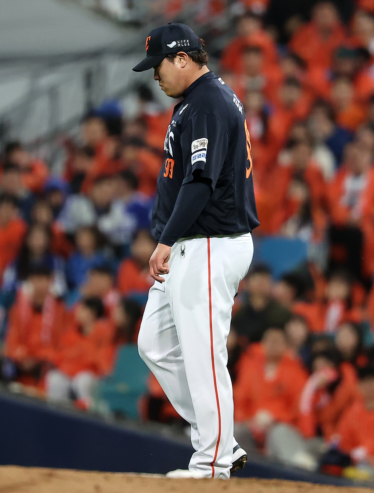 한화 류현진. 뉴스1 김경문 감독은 2차전 선발로 베테랑 좌완 류현진을 내세운다. 김 감독은 “내일은 오늘과 다르게 볼넷이 없어야 한다. 한화가 반대가 되도록 준비하겠다”고 각오를 다졌다. 과연 류현진은 김경문 감독에게 한국시리즈 첫 패배 뒤 승리라는 선물을 할 수 있을까. 다만 류현진도 삼성과의 플레이오프에서 3회까지는 전성기를 방불케 하는 구위를 선보였지만, 4회부터 구위가 급격히 떨어지며 홈런포 두 방을 맞고 4이닝 4실점으로 물러난 바 있다. 류현진마저 무너진다면 김경문 감독은 또 다시 스윕패의 악몽이 스멀스멀 떠오를 수밖에 없다. 남정훈 기자 che@segye.com