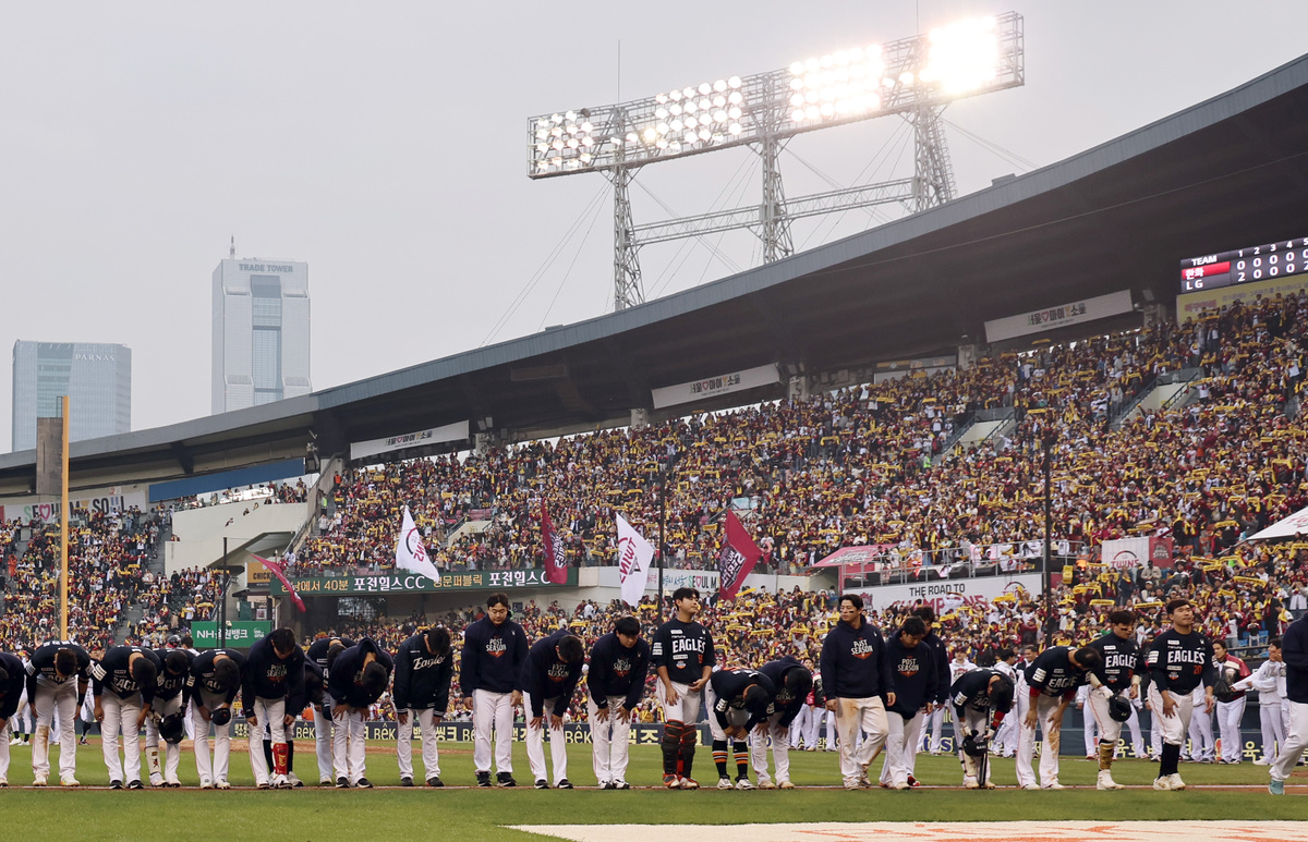 26일 서울 잠실야구장에서 열린 프로야구 2025 신한 SOL뱅크 KBO 포스트시즌 한국시리즈 1차전 한화 이글스와 LG 트윈스의 경기, LG에 8대 2로 패한 한화 선수들이 그라운드를 나서고 있다. 뉴스1 LG 타선은 한화가 6회 두 점을 따라붙어 4-2를 만들자 곧바로 넉점을 달아나며 한화를 넉다운 시켰다. 쓰러뜨린 투수가 한화의 주요 불펜자원들이었다는 점에서 더욱 가치있었다. 한국시리즈에서 선발진에 합류한 문동주 대신 하이 레버리지 상황에서 LG 타자들을 상대해야 할 정우주는 6회 등판해 1사 후 볼넷과 몸에 맞는 공을 내주며 마운드를 내려갔다. 정우주를 구원한 조동욱도 볼넷만 내주고 곧바로 강판. 두 투수를 소모해 아웃카운트 1개만 잡고 만루를 허용한 한화는 박상원을 올렸지만, 정규시즌 만루 상황에서 16타수 9안타로 5할을 넘긴 ‘만루 악마’ 신민재가 곧바로 2타점 직시타를 때려냈고, 김현수와 문보경의 연속 적시타도 터져나오면서 8-2. 거기서 이날 승부는 끝났다. 한화의 가장 믿었던 구석이 사라졌다. 과연 김경문 감독과 한화 벤치는 이 난국을 어떻게 타개할 수 있을까. 2차전 선발로 내정된 류현진이 달궈진 LG 타선을 식혀내야만 한화가 1999년 이후 26년 만에 한국시리즈 우승을 차지할 수 있다. 남정훈 기자 che@segye.com
