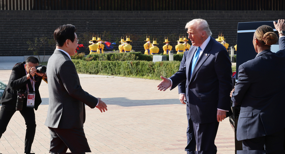 29일 경북 경주국립박물관에서서 한미 정상회담이 열렸다. 경주예술의전당에서 APEC CEO 써밋 특별연설을 마치고 한미 정상회담 행사장인 경주국립박물관 천년미소관에 도착한 트럼프 미국 대통령은 방명록을 작성하고 이재명 대통령과 기념촬영을 한 뒤 공식환영식에서 의장대 사열을 받았다. 공식환영식 마친 양국 정상은 친교행사장 이동했다. 트럼프 대통령은 이재명 대통령으로부터 한국 최고 훈장인 '무궁화 대훈장'을 수여받고, '천마총 금관 모형'을 선물받았다.