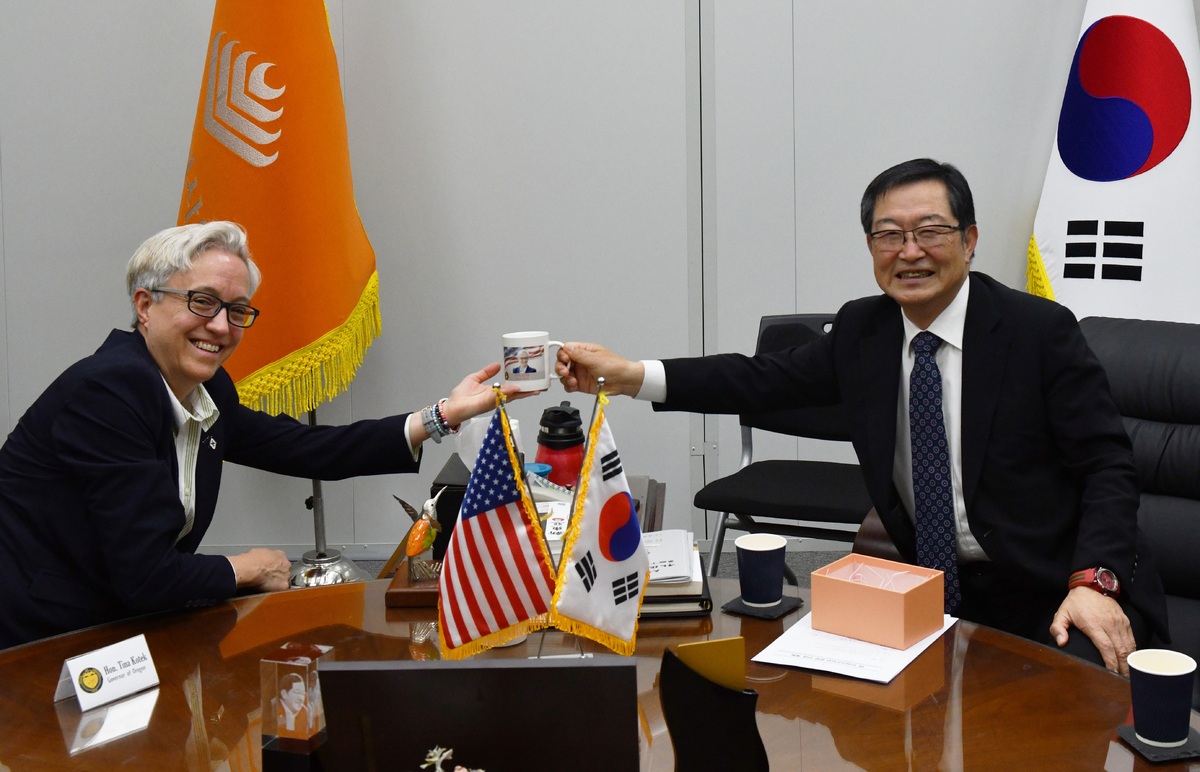 지난 26일 서울 용산 전쟁기념관을 찾은 티나 코텍 미국 오리건주(州) 주지사(왼쪽)가 기념관 운영 주체인 전쟁기념사업회 백승주 회장과 기념품을 교환하고 있다. 전쟁기념사업회 제공 제리의 딸 티나 코텍(59)은 비교적 평범한 삶을 산 아버지와 달리 젊어서 정계에 입문했다. 그리고 2023년 민주당 소속으로 미 북서부 오리건주 주지사가 됐다. 지난 26일 서울 용산 전쟁기념관을 찾은 그는 기념관 운영 주체인 전쟁기념사업회 백승주 회장과의 대화 도중 “부친(제리 코텍)의 6·25 전쟁 참전 경험으로 한국과 특별한 인연을 느끼고 있다”는 소감을 밝혔다. 한국 방문은 이번이 처음이라는 코텍 주지사는 “방한 일정 중 전쟁기념관은 반드시 가봐야 한다고 생각했다”고 소개했다. 이어 오리건주 윌슨빌에 6·25 전쟁 기념공원이 있음을 언급하며 “앞으로도 미래 세대에게 평화와 자유의 가치를 전하겠다”고 다짐했다. 코텍 주지사의 건승을 기원하고, 아울러 그 선친인 제리 코텍 6·25 참전용사의 명복을 빈다. 김태훈 논설위원 af103@segye.com
