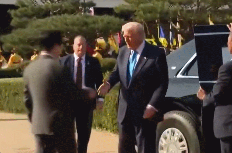 이재명 대통령이 29일 한미 정상회담을 위해 경북 경주국립박물관에 도착하는 트럼프 대통령을 맞이하고 있다. 사회관계망서비스(SNS) 캡처 무궁화대훈장은 국가 안전 보장에 기여한 우방국 원수에게 예외적으로 수여해 왔으며 트럼프 대통령은 역대 미국 대통령 중 처음으로 무궁화대훈장을 받았다. 정부 수립 이후 현재까지 약 90여명의 외국 정상과 그 배우자가 무궁화대훈장을 받았다. 첫 외국인 수훈자는 1964년 하인리히 뤼브케 서독 대통령이었다. 당시 독일은 한국에 1억4000만마르크 차관을 제공하며 경제개발에 기여했다.
