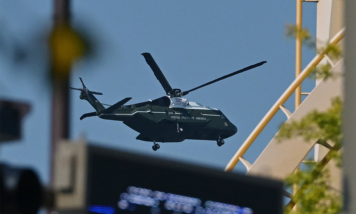 에이펙 정상회의를 계기로 방한한 도널드 트럼프 미국 대통령이 탑승한 헬기 ‘마린원’이 29일 경북 경주 보문관광단지의 헬기장에 착륙하고 있다. 경주=남정탁 기