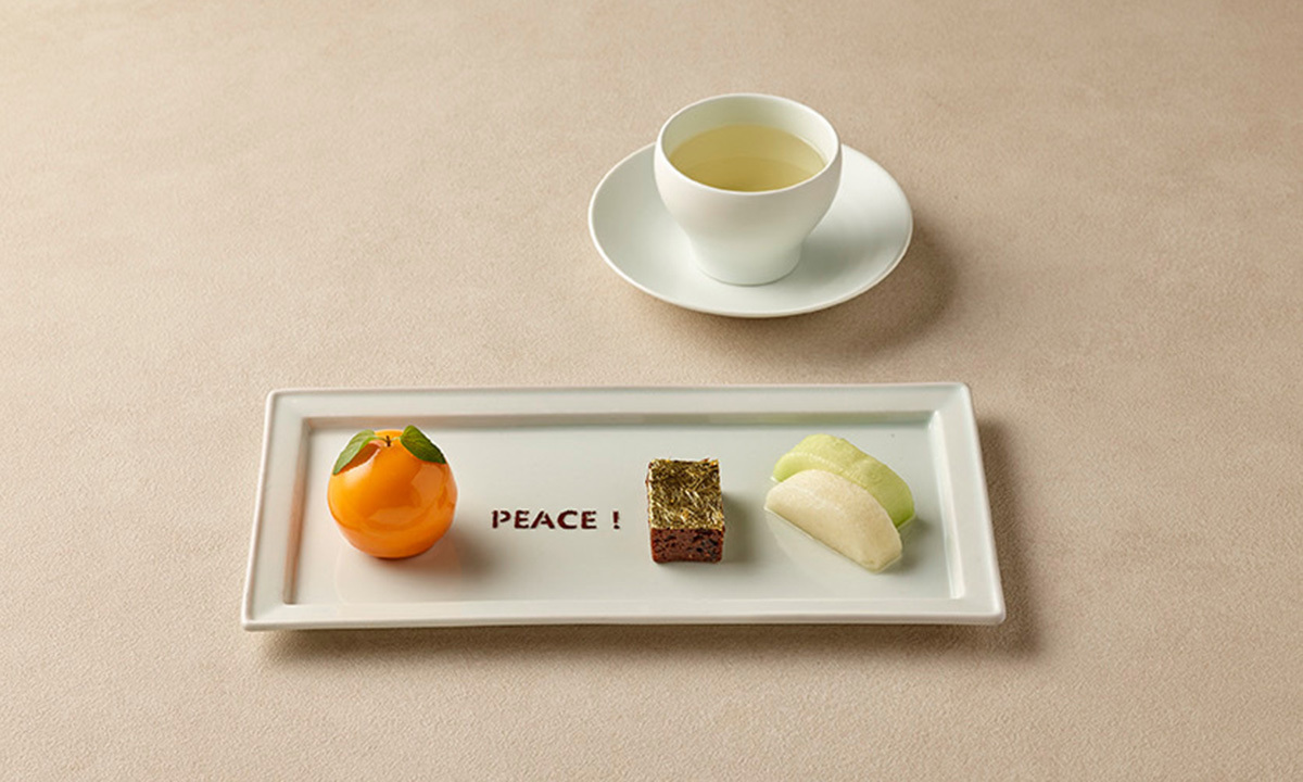 갈비찜과 디저트 29일 한·미 정상회담 오찬 및 디저트 메뉴. 미국산 갈비를 쓴 갈비찜 등이 메인 식사로 올랐고 ‘평화’를 뜻하는 영단어 ‘PEACE’를 레터링한 감귤 디저트가 제공됐다. 대통령실 제공
