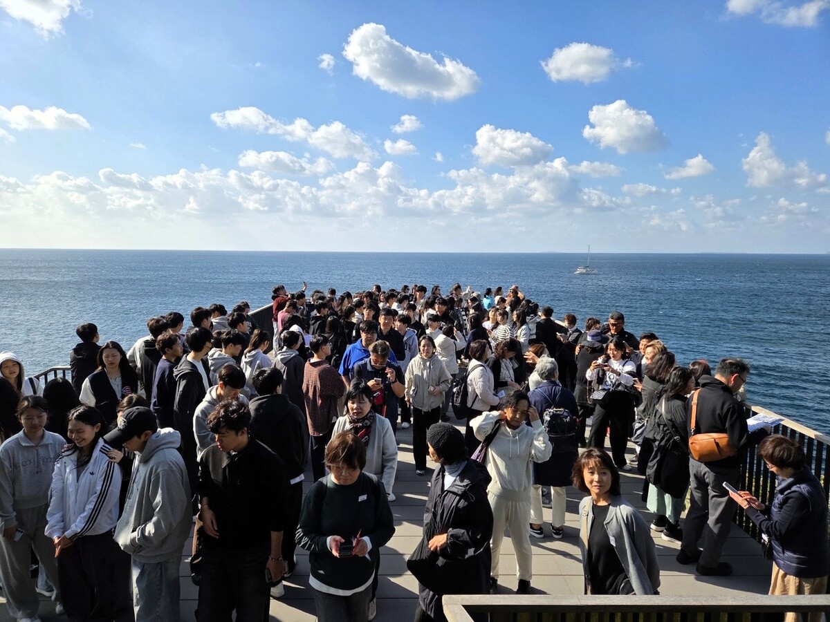 1일 제주 서귀포시 중문동 주상절리 전망대에서 제주의 가을 정취를 만끽하는 수학여행단과 외국인관광객. 중국·대만 등 핵심 시장 외에 일본·싱가포르까지 홍보를 확대하며 시장 다변화를 추진했다. 제주 해외 공식 서포터즈 ‘JJ프렌즈’ 운영, 중국 씨트립·통청망 등 글로벌 온라인여행사(OTA)와 따중디엔핑 등 현지 생활 앱 연계 프로모션, 해외 수학여행단 유치 마케팅을 진행했다.