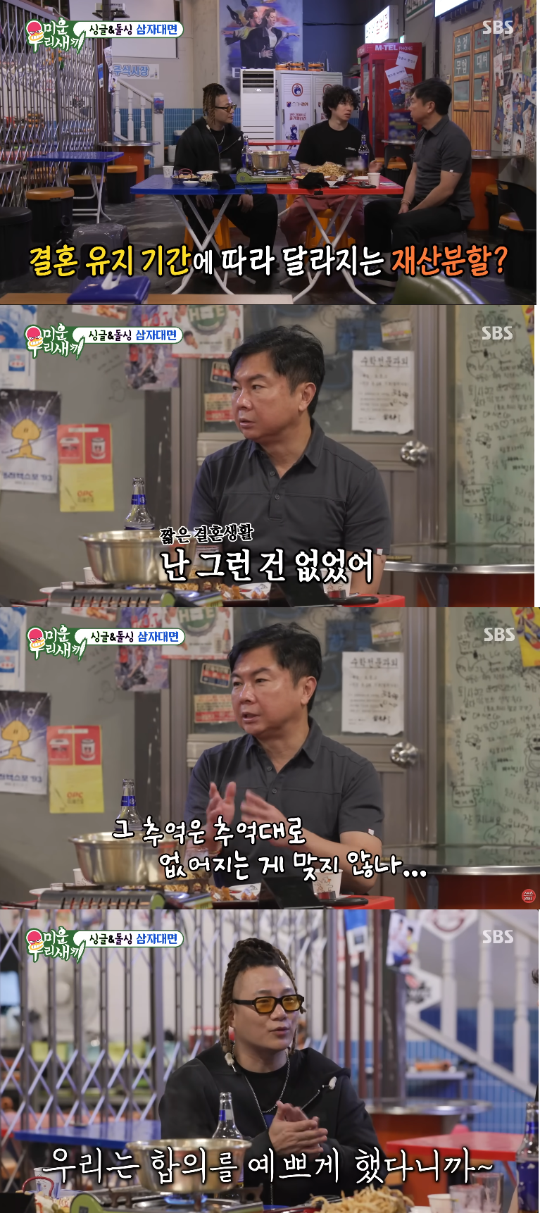 지난 2일 방송된 SBS 예능 프로그램 ‘미운 우리 새끼’에서는 김희철, 윤민수, 임원희가 함께 식사를 하며 현실적인 ‘이혼 토크’를 나누는 장면이 그려졌다.