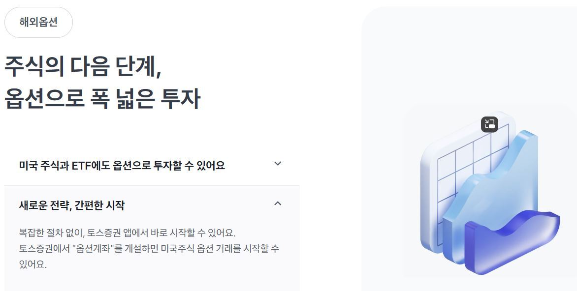 토스증권의 옵션 설명. 스레드 캡처 6일 업계에 따르면 토스증권은 지난 3일부터 일부 고객을 대상으로 해외주식 옵션 거래 서비스를 제공하기 시작했다. 토스증권은 해외주식 옵션을 ‘복잡한 절차 없이, 앱에서 바로 시작할 수 있다’고 소개하고 있다. 구조가 복잡하고 위험이 높은 파생상품의 접근을 제한하기보다는 쉽게 접근해 고객이 스스로 위험을 인지할 수 있도록 한다는 입장이다.