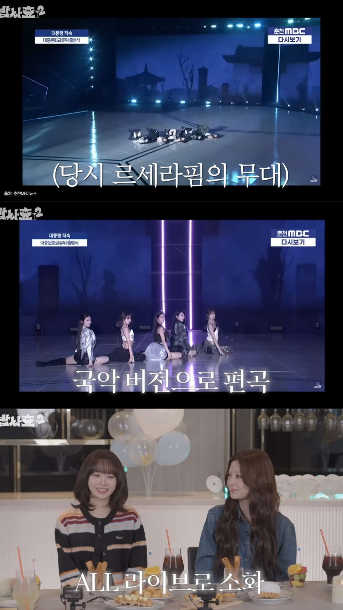 이에 효연은 “무대만 봤을 때는 얼어있는 게 하나도 안 보이고 되게 재밌어 보이더라”면서 국악 버전으로 편곡했던 당시의 무대 화면을 함께 시청했다.
