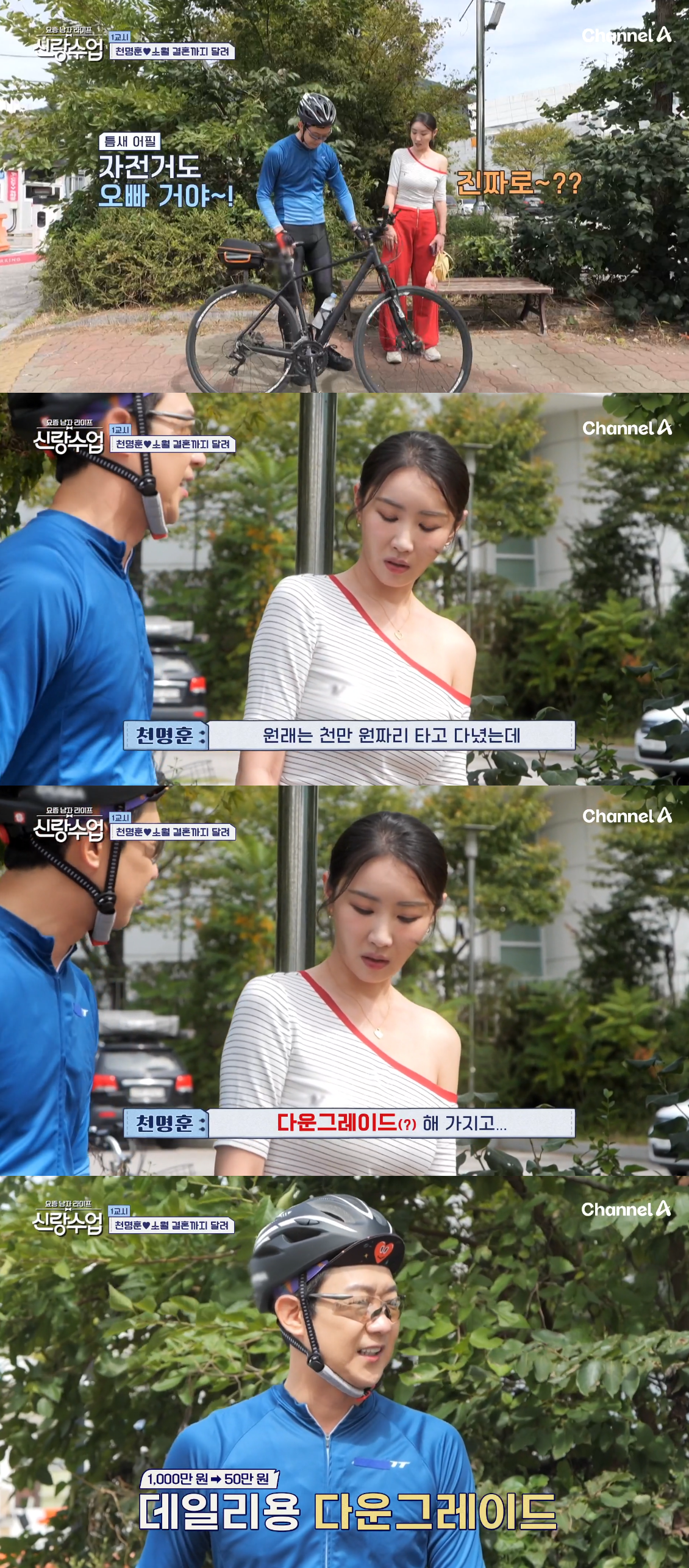 지난 5일 방송된 채널A 예능 프로그램 ‘요즘 남자 라이프?신랑수업’에서는 천명훈이 ‘미스 차이나’ 출신 소월과 팔당 라이딩 데이트를 즐기는 모습이 공개됐다.