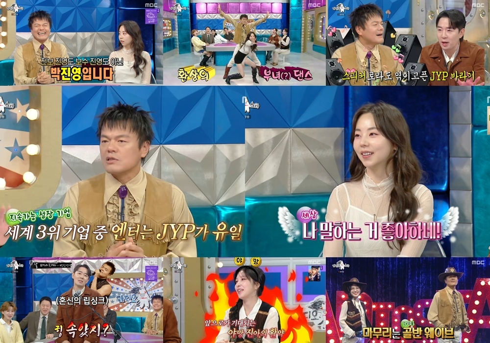 박진영은 이어 ESG ‘세계 지속성장 기업’ 순위에서 JYP가 세계 3위, 한국 1위를 기록했다고 밝히며 “진심이 담긴 시스템이 결국 통한다”라고 소신을 전했다. 한편 이날 방송에는 박진영을 비롯해 안소희, 붐, 권진아가 출연했다.