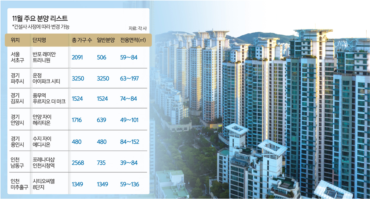 사진=뉴스1 ◆비규제지역 공급 주도… 서울은 ‘로또 청약’ 9일 부동산 전문 리서치업체 리얼투데이에 따르면 11월 전국 분양 물량은 총 51곳, 4만5507가구(임대 포함·오피스텔 제외)로 집계됐다. 이 중 일반분양이 3만815가구(예정)다.