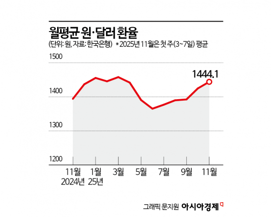 이달 원·달러 환율 급등에는 외국인 투자자의 대규모 국내 주식 매도세가 직접적인 영향을 미쳤다. 외국인은 11월 첫 주에만 국내 주식 7조2638억 원어치를 순매도했다. 아시아태평양경제협력체(APEC) 정상회의에서 관세와 대미 투자 등 굵직한 불확실성 요인이 해소되자, 그간 급등에 따른 차익실현 물량이 대거 출회됐다는 분석이다. 시장에선 외국인의 썰물 흐름이 당분간 이어지면서 원화를 달러로 바꾸려는 수요가 늘며 환율 상승을 부추길 수 있다고 우려했다. 인공지능(AI) 거품론으로 글로벌 증시 변동성이 커진 가운데 미국 고용 악화 우려 등에 따라 위험 회피 심리가 강화하면 추가 출회가 이어질 수 있다는 것이다.