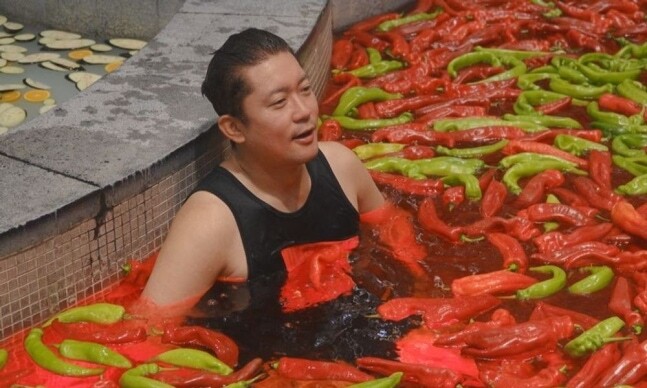 MBC every1 '위대한 가이드2.5-대다난 가이드' 이어 사우나를 방문한 김대호는 고추, 오렌지, 가지 등 실제 식재료가 들어간 훠궈탕 스타일의 대형 탕을 보고 대륙의 스케일에 놀라 입을 다물지 못한다. 그러다 김대호는 고추가 가득한 빨간 고추탕에 몸을 담그고 탕의 물을 마시거나 고추를 씹어먹어 스튜디오를 경악케하게 한다.