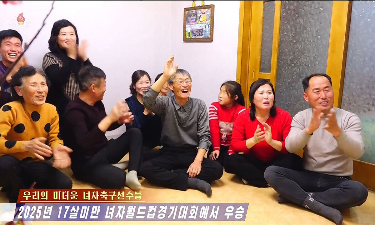 북한 주민들은 집에서도 가족이 TV앞에 모여 9일 2025 FIFA U-17 여자월드컵 결승 경기를 관람했다. 조선중앙TV·연합뉴스