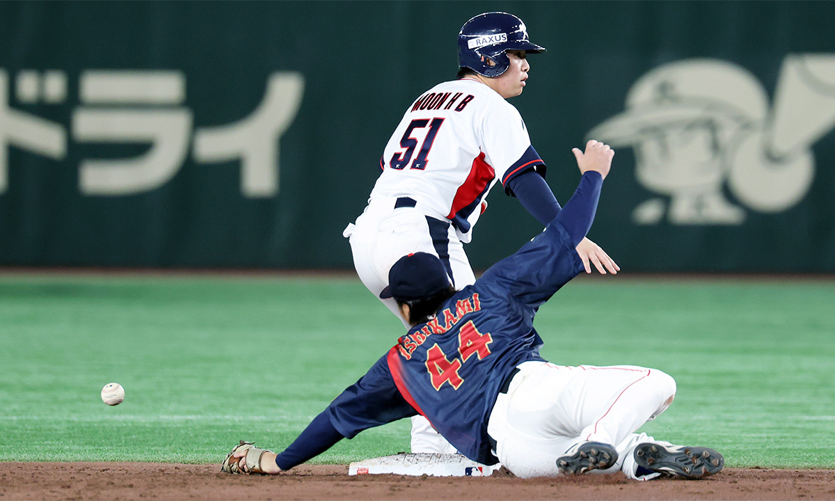 16일 일본 도쿄돔에서 열린 2025 K베이스볼 시리즈 대한민국과 일본의 평가전. 4회말 1사 1루 최재훈 타석 때 1루에 있던 문현빈이 2루 도루에 성공하고 있다. 연합뉴스 파월 심판은 전날 경기엔 주심을 맡았다가 오심을 저질렀다. 공교롭게도 그 오심 역시 문현빈이 그 대상이었다. 5회 문현빈의 투수 앞 강습 타구가 마운드에 원바운드된 뒤 투수를 맞고 굴절돼 공이 떠올라 1루수가 파울라인 밖에서 잡아냈다. 그러나 파월 주심은 마운드에 바운드되지 않고 곧바로 투수에게 공이 맞고 튀었다고 판단해 문현빈을 아웃 처리했다. 류지현 감독이 벤치에서 나와 항의했지만 “4심 합의라 번복할 수 없다”라며 판독조차 할 수 없었다. 파월 심판은 올해 메이저리그 최초 여성 심판으로 데뷔했다. 그러나 이런 능력으로는 국제대회 심판을 맡을 수 없음을 이번 K-베이스볼 시리즈 2경기를 통해 여실히 증명됐다.