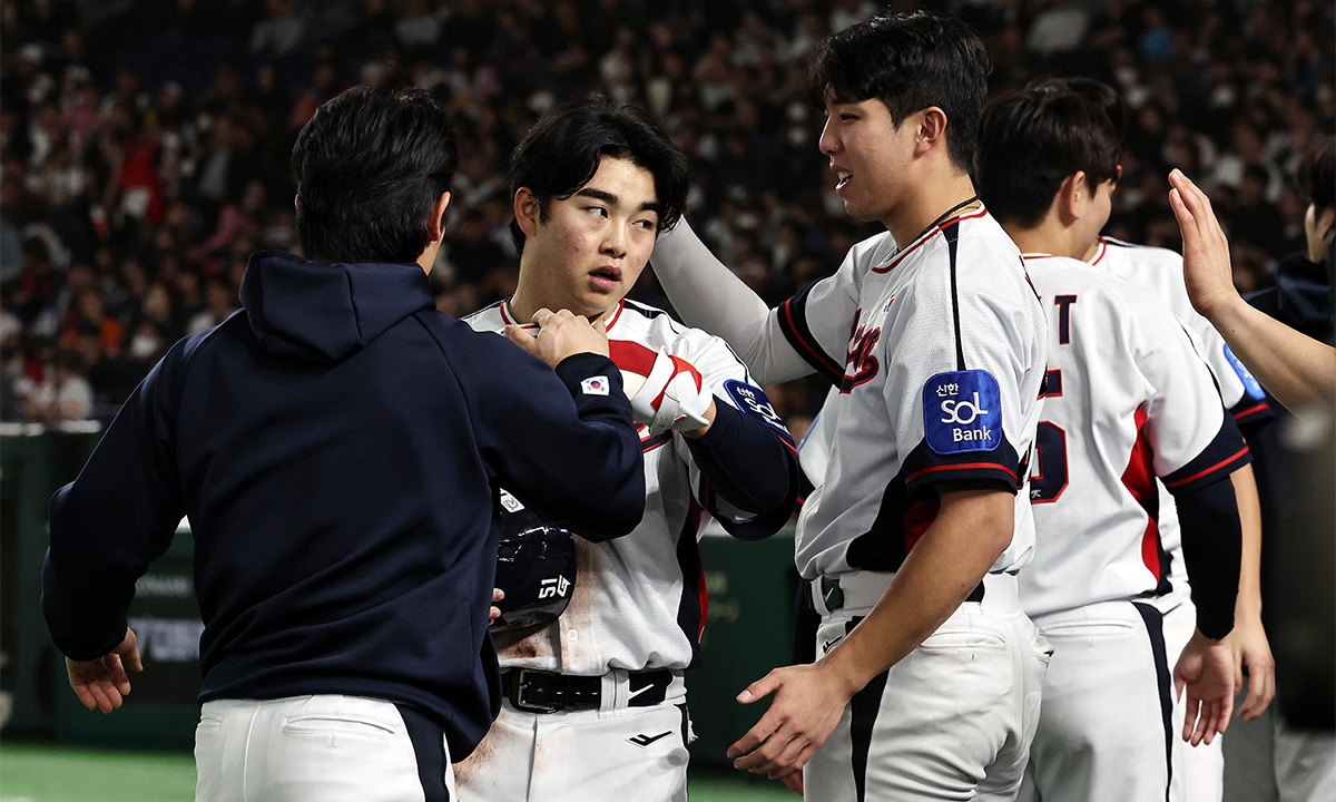 16일 오후 일본 도쿄돔에서 열린 월드베이스볼클래식(WBC) 대비 평가전 '2025 케이 베이스볼 시리즈(K-BASEBALL SERIES)' 일본과의 2차전 경기. 전날 1차전 경기에서 오심 논란을 부른 젠 파월 심판이 2루심을 보고 있다. 뉴스1 류지현 감독이 이끄는 한국야구 대표팀은 16일 일본 도쿄돔에서 열린 2025 K-베이스볼 시리즈 2차전을 치렀다. 한국이 3회말 공격에서 3점을 선취했으나 이어진 4회초에 3점을 헌납하며 3-3 동점이 된 4회말 한국 공격. 선두타자 문현빈은 우전 안타로 출루했다. 김주원이 삼진을 당해 1사 1루에서 최재훈 타석 때 2루 도루를 시도했다. 워낙 타이밍이 좋았기에 세이프가 넉넉해 보였다. 게다가 2루수인 이시카미 다이케는 포수 기시다 유키노리의 송구를 잡았다가 놓쳤다. 그러나 이날 2루심을 맡은 파월은 이시카미가 공을 잡았다고 판단했던걸까. 아웃을 선언하려다가 이시카미가 공을 놓친 걸 보고서야 뒤늦게 세이프로 판정을 바꿨다.