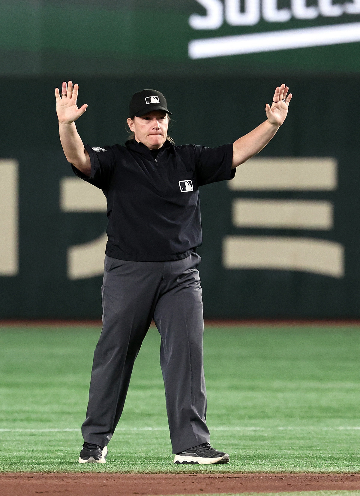 K-베이스볼 시리즈 일본과의 1차전에서 결정적인 오심을 저지른 메이저리그 최초 여성 심판 젠 파월. 2차전에서도 오심을 할 뻔 했다. 이쯤이면 한국에 악감정이 있는 게 아닐까 의심스러울 정도다.